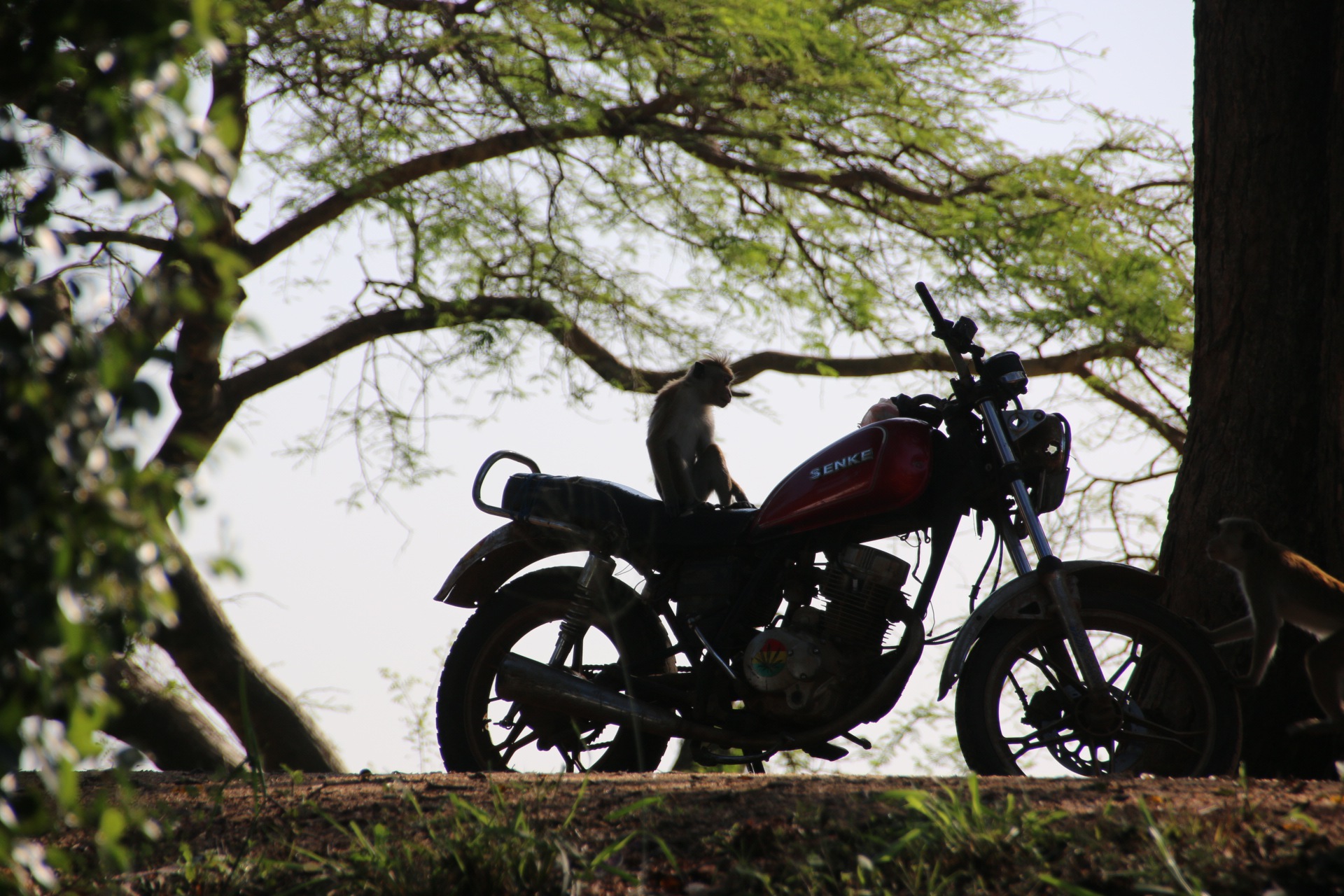 Breakfast by the lake – a cool, glorious morning for us to explore & the local monkey gang to set off on their Triumphs.