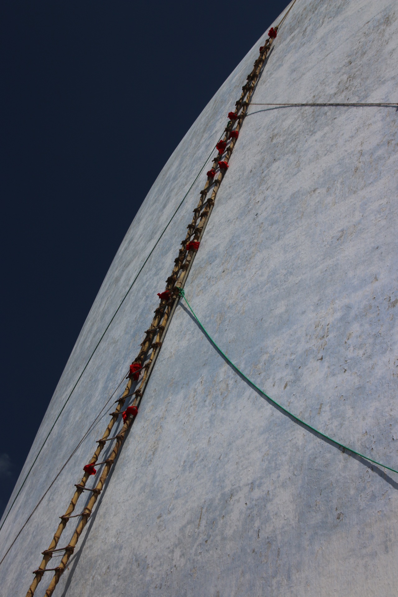 They clean the plaster dome very three weeks swinging around it on this ladder: