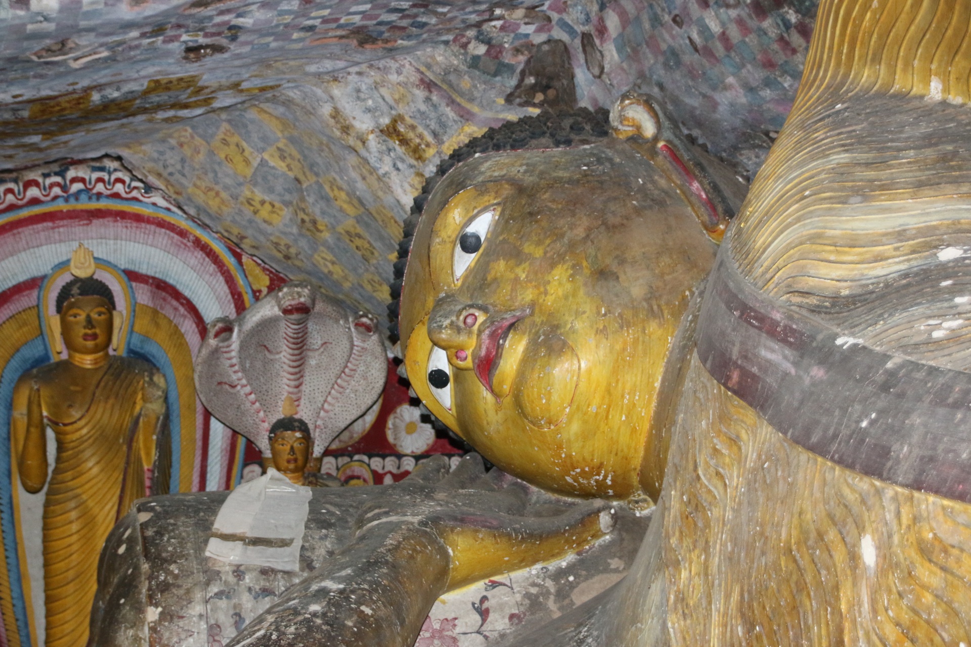 Behind the white facade are five temple caves each of which is home to 100s of statues and painted Buddhas.