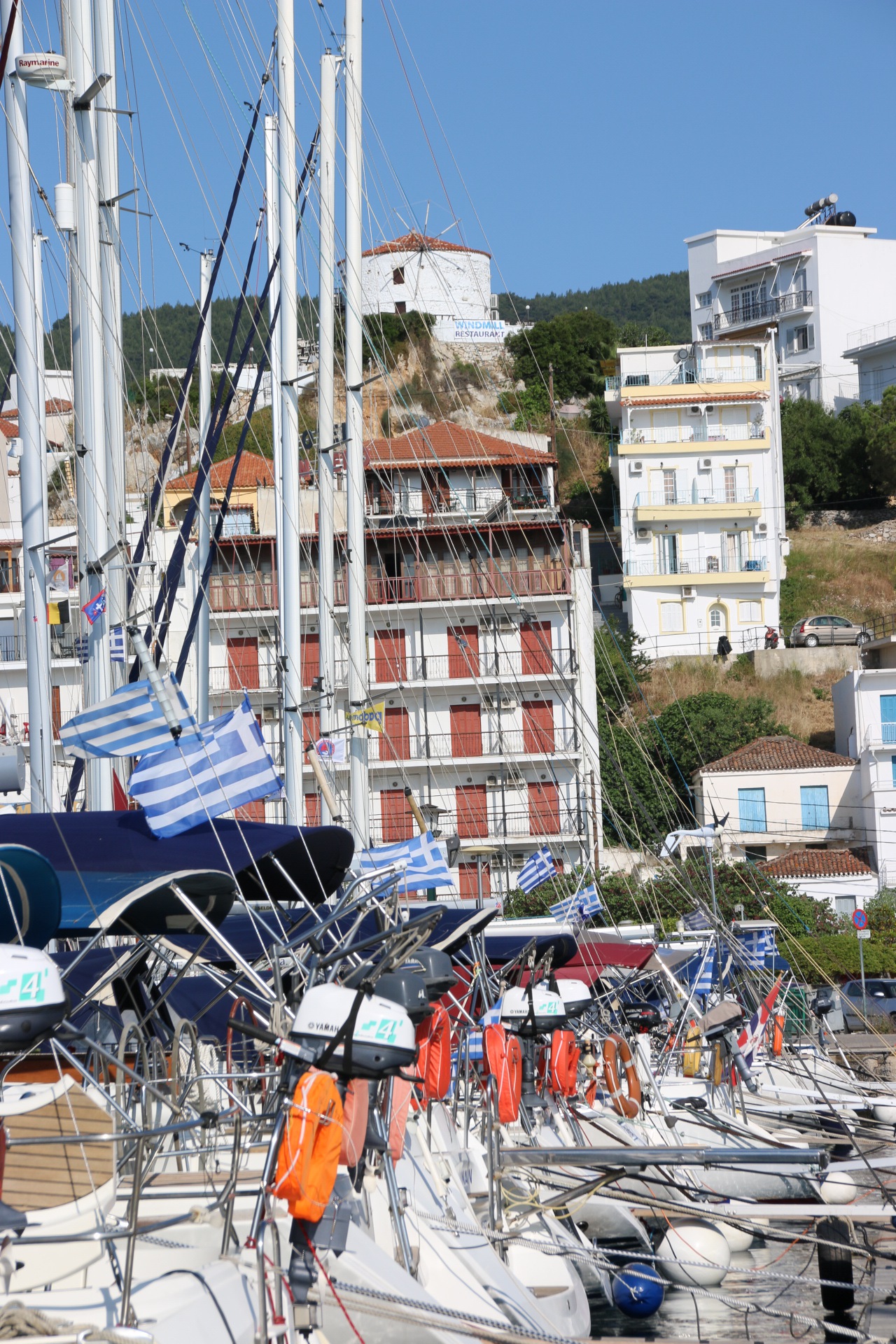 Arrived in Skathioss last night. Now preparing the boat & collecting supplies for two weeks around Aegean with good friends Lynn & Steve and Chris & Denise..