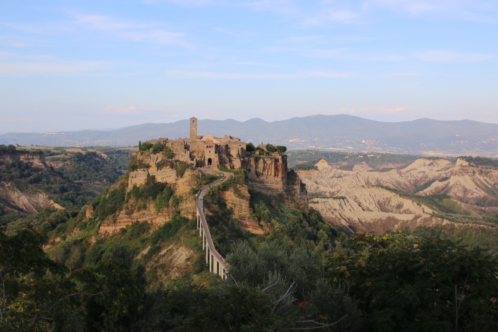 The last few days in Lazio bring Italian life to the fore. Firstly dinner at Il Ponto restaurant overlooking the stranded village of Civita do Bagnoregio linked to the ‘mainland’ by the long pedestrian bridge.