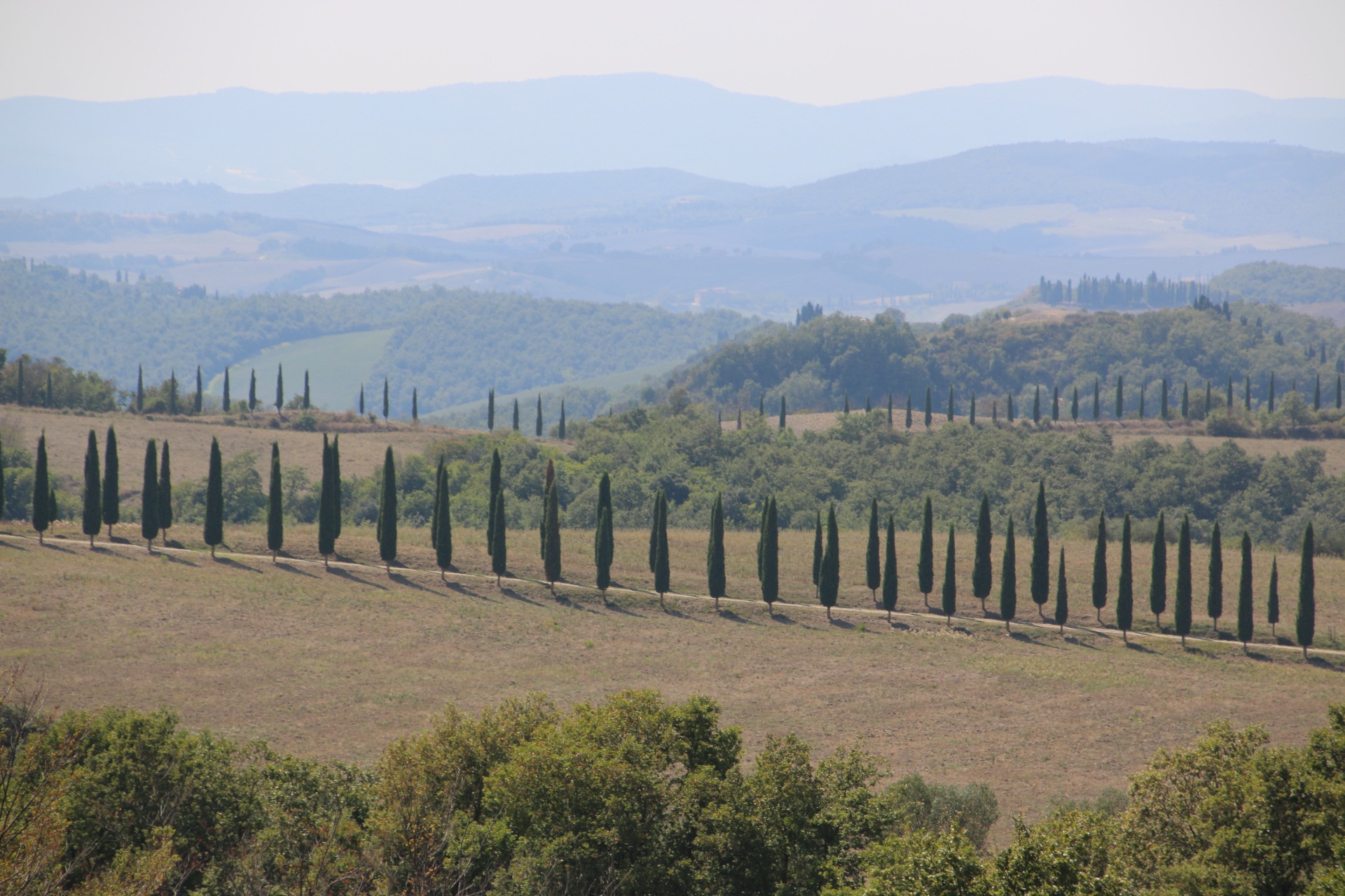 We drive across the farmland of Lazio, the scenery becoming less wooded as we move north via the Abbazia di Monte Oliveto Maggiore providing a haven of shade from the parched landscape of southern Tuscany-not that there were many monks in evidence; just the well heeled clientele at the exclusive restaurant.