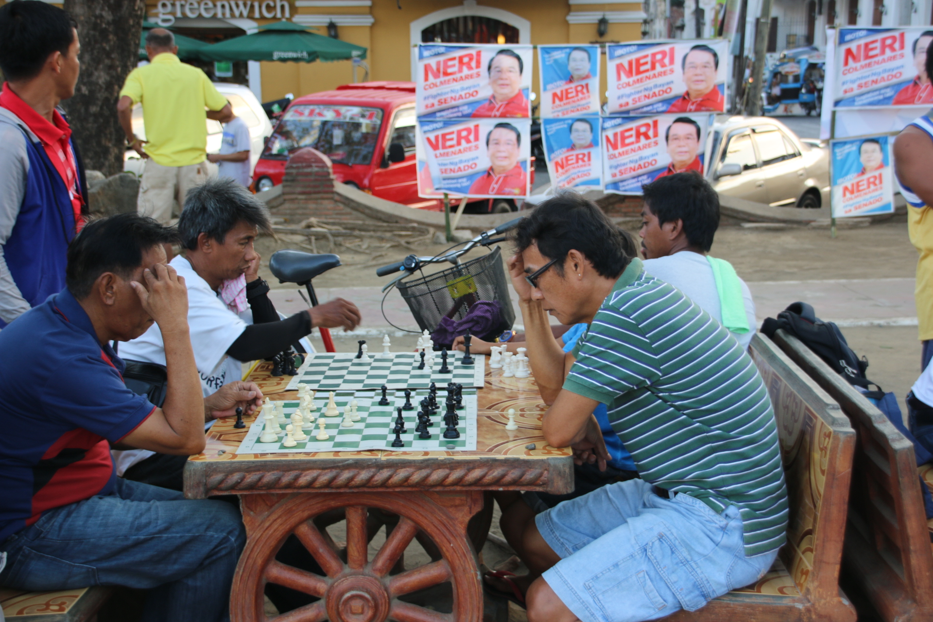The plaza, as with all Spanish towns home and abroad, is the centre of town life. Vigan is no exception and has a few unique features. The traditional eateries are common, as are the families and groups sitting around passing the time together. The skate boarders trying out their skills are slightly more unusual. But what about these guys?