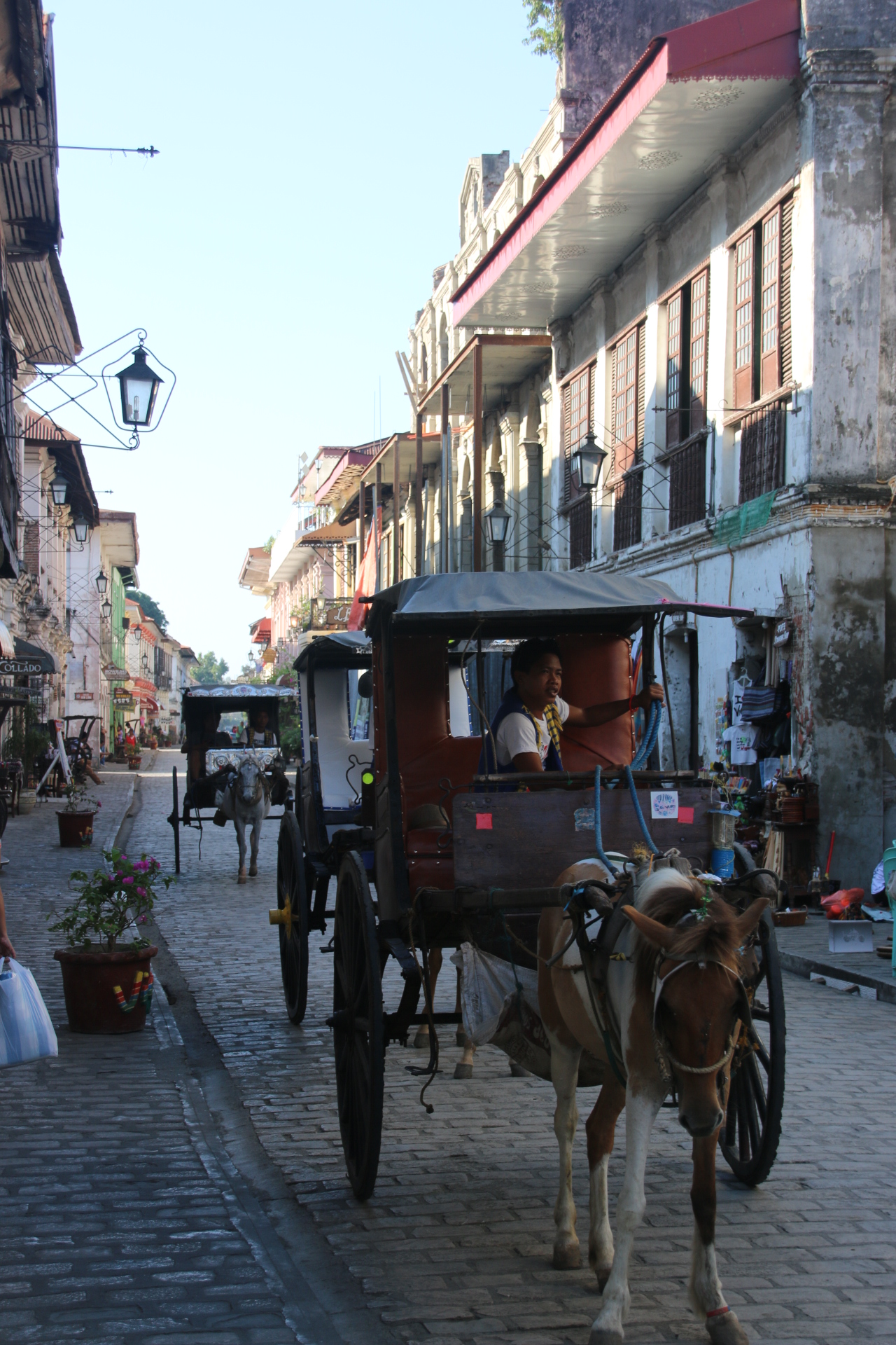 Vigan has a charm all of its own which is felt immediately you wander through the narrow streets, avoiding the buzzing motor bike/sidecar tuktuks, whose body work, here, resembles Roman legionnaires, and the loud clip clopping nags pulling their elegant, two wheeled tourist carriages, into the gentle hubbub of the plaza. It is one of the few Hispanic towns left in the Philippines and a reminder of the arrival of the Spanish searching for spices for their dishes and souls for their church.