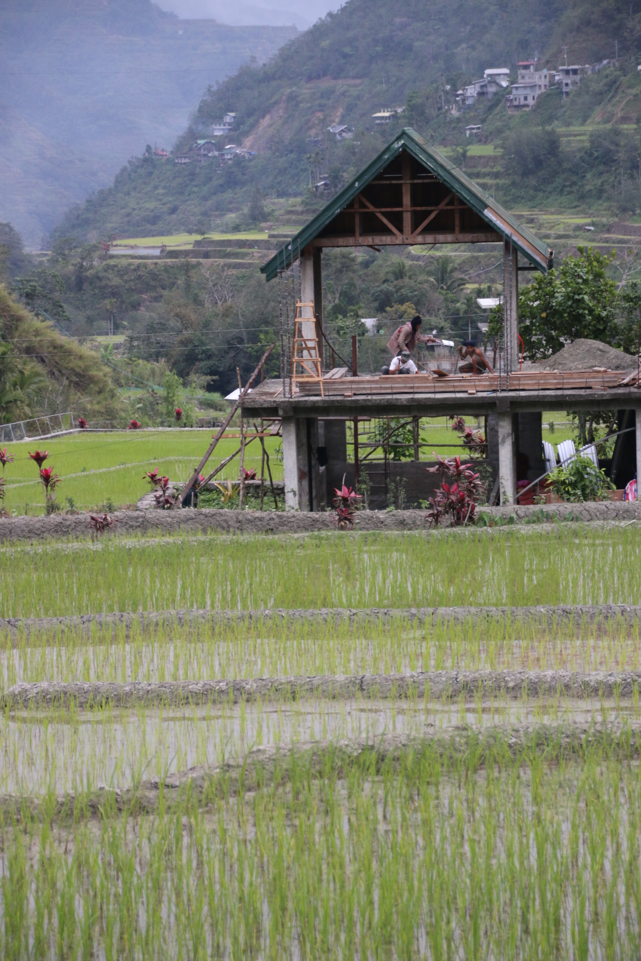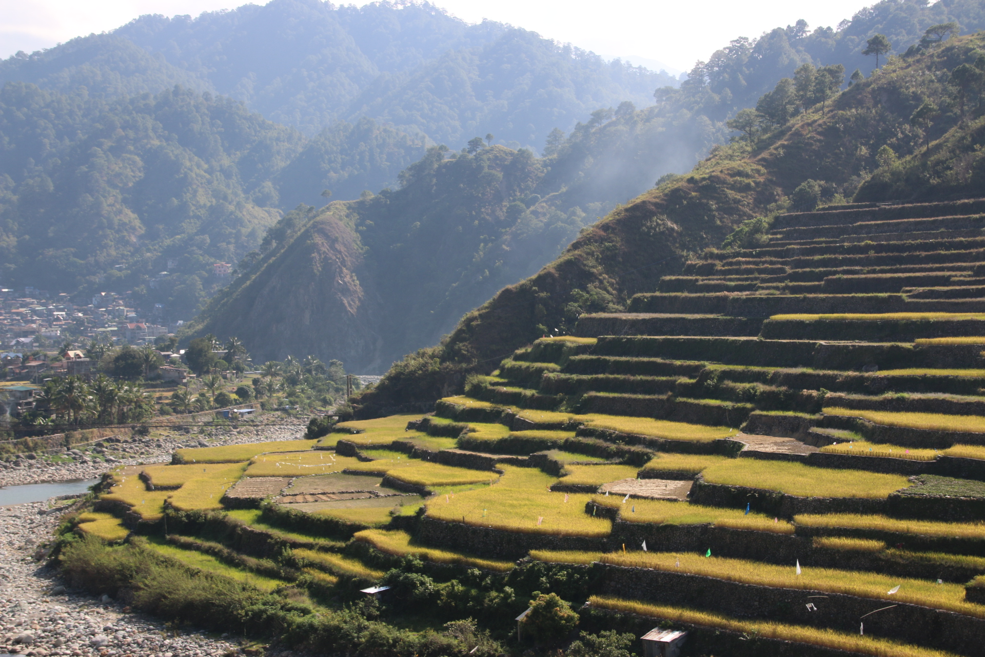 They have been here for over 2000 years and were the prototype for all terraces in the Philippines. Some are created with mud walls, which can collapse after heavy rain, and others, the stronger ones, with stones and boulders. All are irrigated efficiently and have clear water trickling through or beside them in narrow channels with simple weirs to control the flow.
