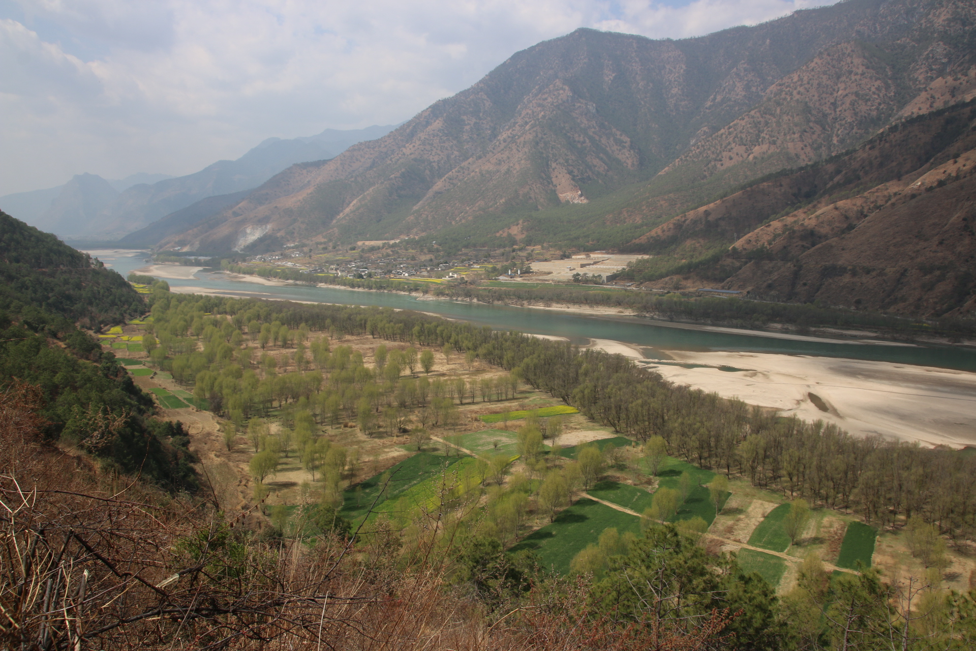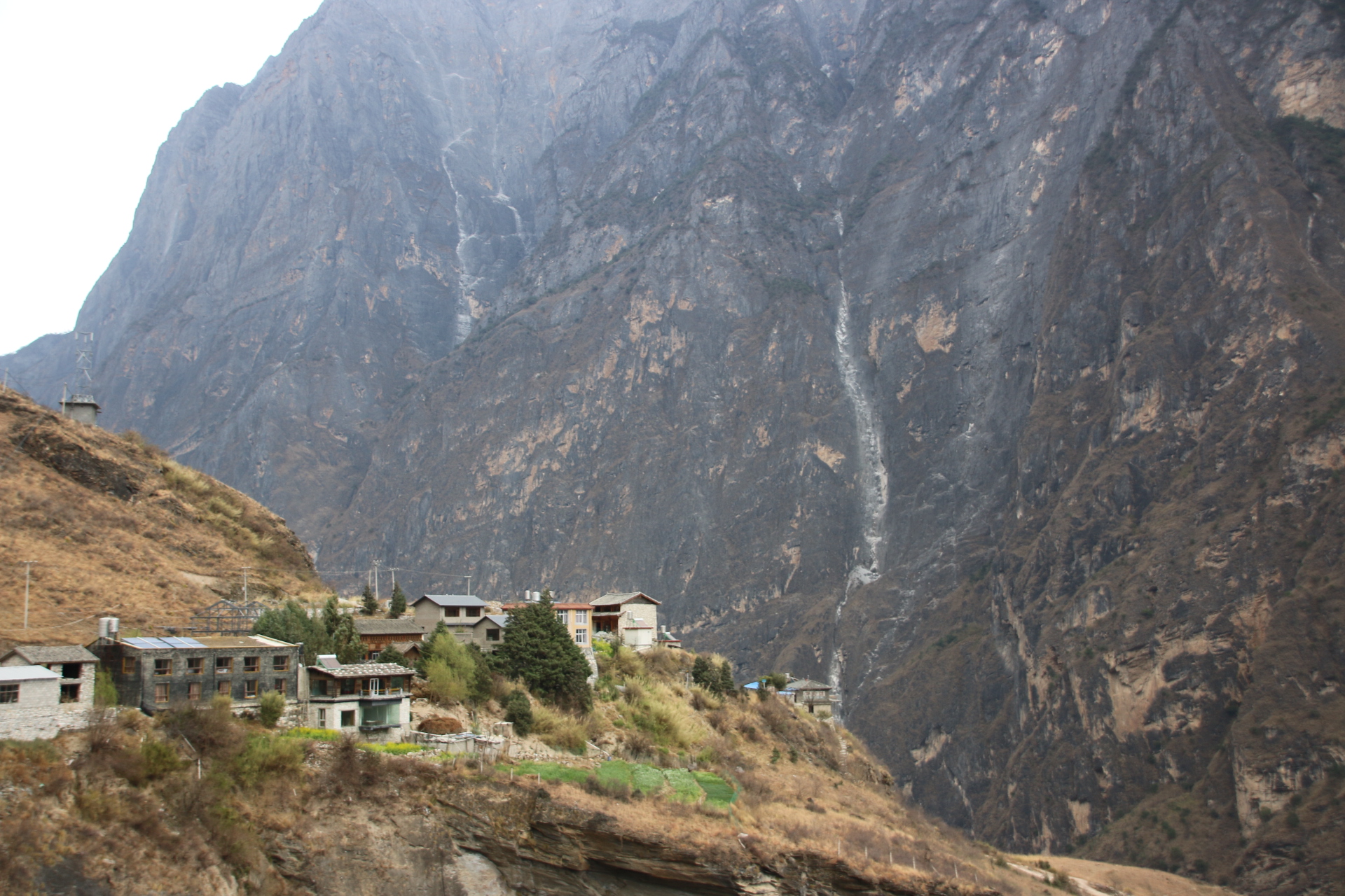 From here it’s further upstream to Tiger Leaping Gorge where the river is forced into a fault line some 4,000 metres below the highest peaks. In places it is only 30 metres wide and the waters are a roaring, swirling, gushing torrent for several kilometres. Locals named it as the place where tigers could jump across the narrow gap.