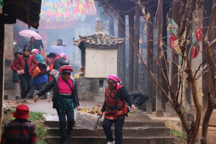 The Jiejingu Festival takes place just outside Weishan each year. The Bai people of Dali and Wieshan believe their gods & ancestors have a home in each town depending on the time of year. In March residents of Dali travel to Wieshan to invite the gods back to their town. They travel to West Big Temples where there are 24 temples scattered around a village on a piece of hillside outside Wieshan. Each temple is maintained by individual villages and houses their representatives for the duration of the 3/4 day festival and are dedicated to Buddism, Taoism, Confucianism, Ancestor-worship and the Nature God.