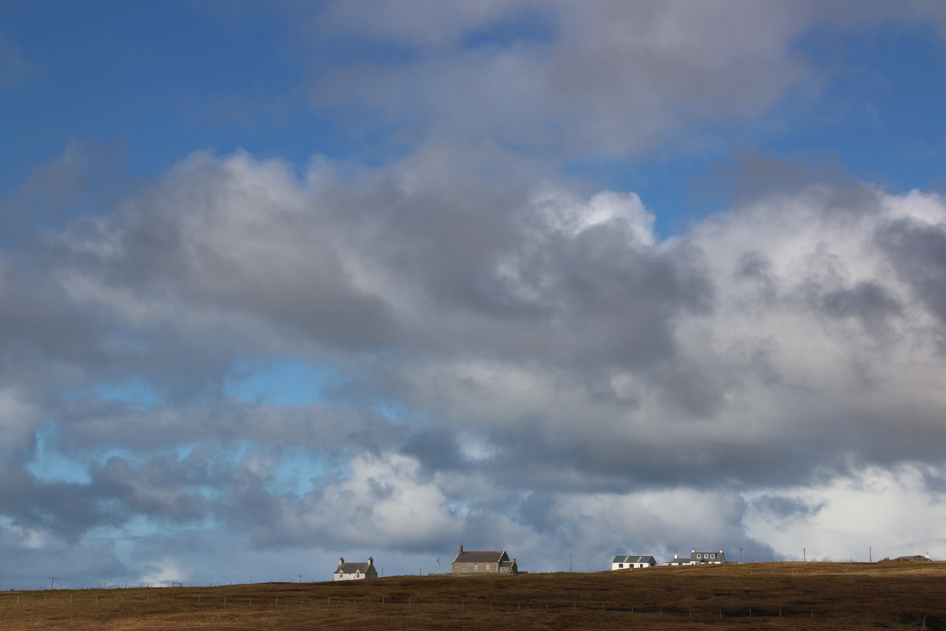 I woke up this morning to grey skies. Within minutes there were flurries of snow in a bitter north westerly wind. 10 minutes later it was proper snow settling on the immediate landscape and hiding the village and the hills with a thick curtain of white gauze. A further 15 minutes down the line and the band of weather passes revealing a huge expanse of brilliant blue sky and we are back to the weather of yesterday, waiting for more bands to send folk scurrying indoors.