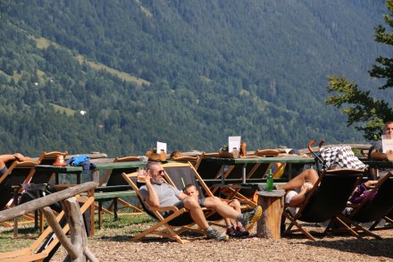 OK. Off to explore the area. 10 minutes by car up the valley is Kranjska Gora, one of Slovenia’s largest ski resorts. Busy in winter, yes. But also multitasking in summer. The ski lift, one of many, takes punters up to the top. From there you can take the trails down on your bike, slalom along the monotoboggan track, hike (carrying an infant if so inclined) along and down, climb up a peak with all the kit and abseil down or sit in a deck chair and have a beer before deciding which one to do to get down. Pete, the car park at the bottom has many overnight vans.
