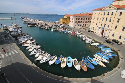 After the storm of last night, this morning was a different day and a different light in which to view this gold nugget on Slovenia’s short coast. Piran is one of the best-preserved historical towns anywhere on the Adriatic – a gem of Venetian Gothic architecture. The Greeks and Romans developed the town as a port but its real importance came in the 13th century, when for five centuries Piran supplied its Venetian rulers with salt.