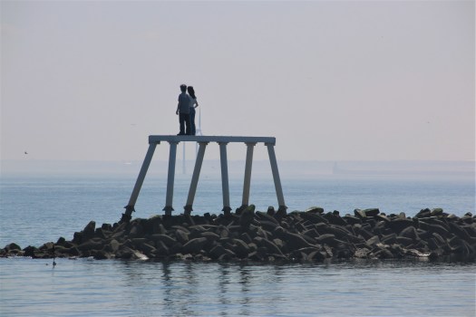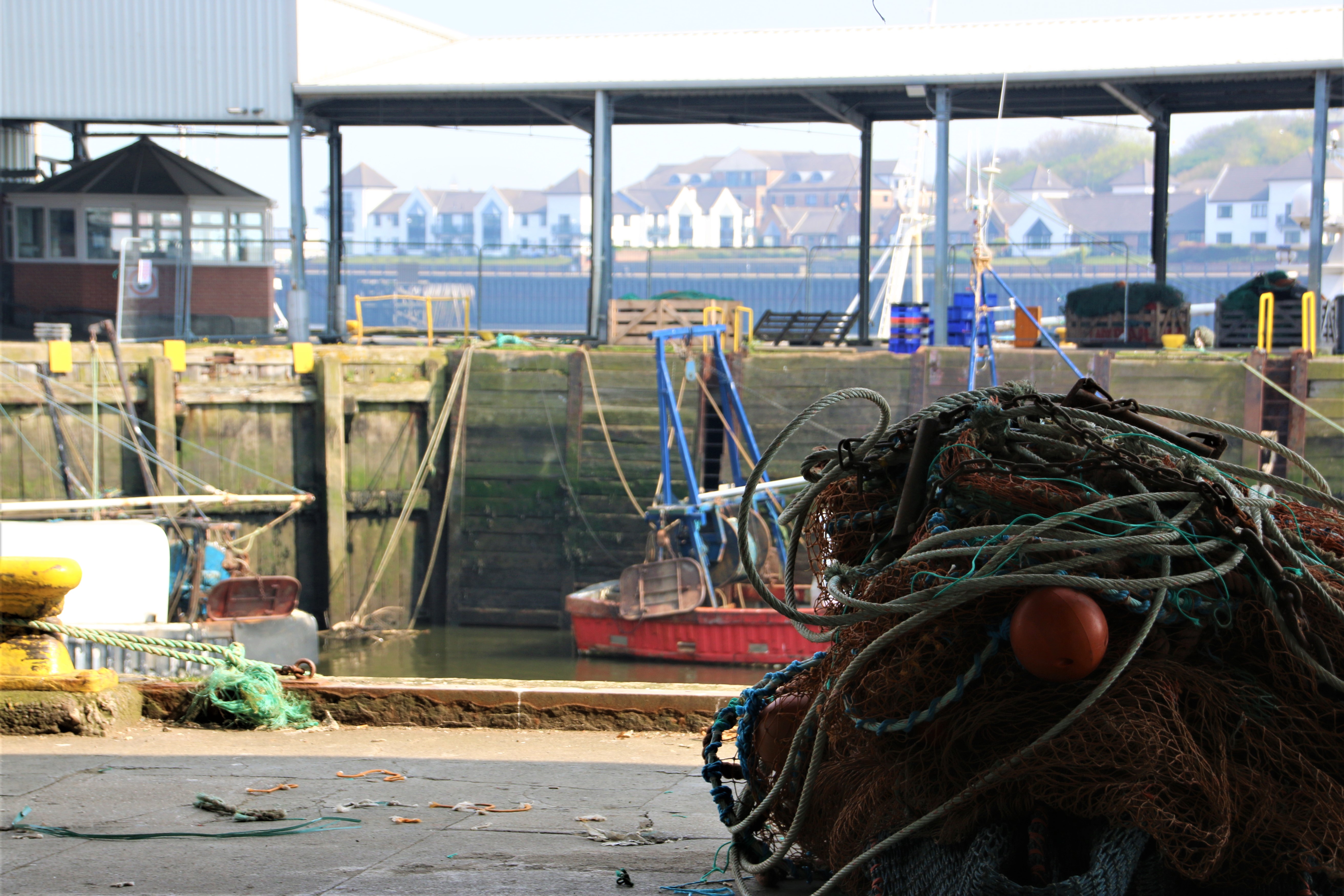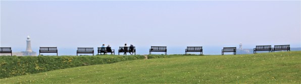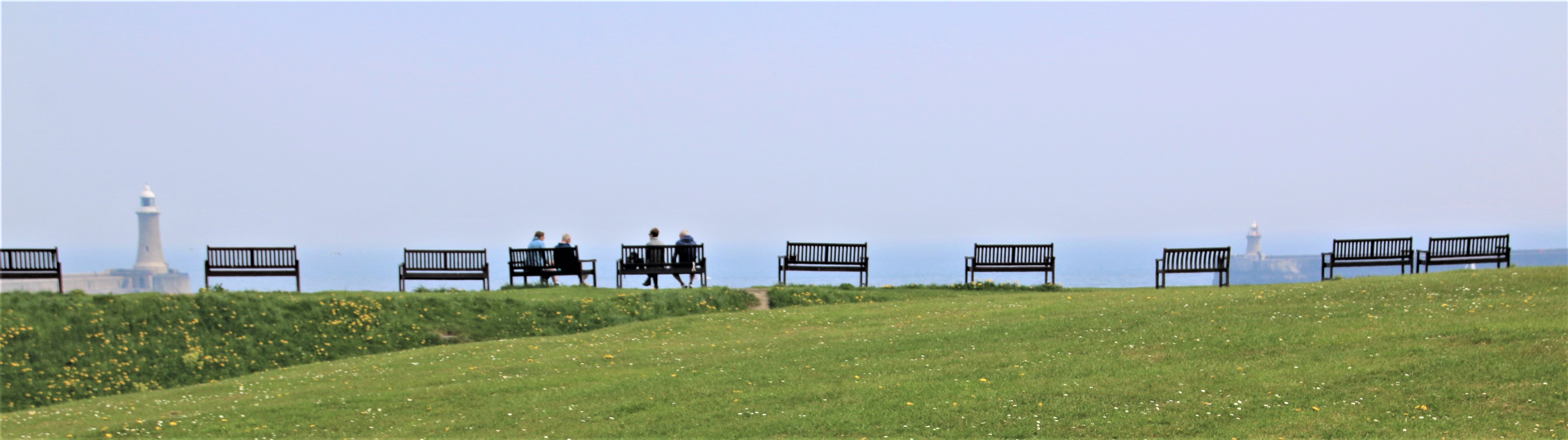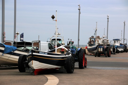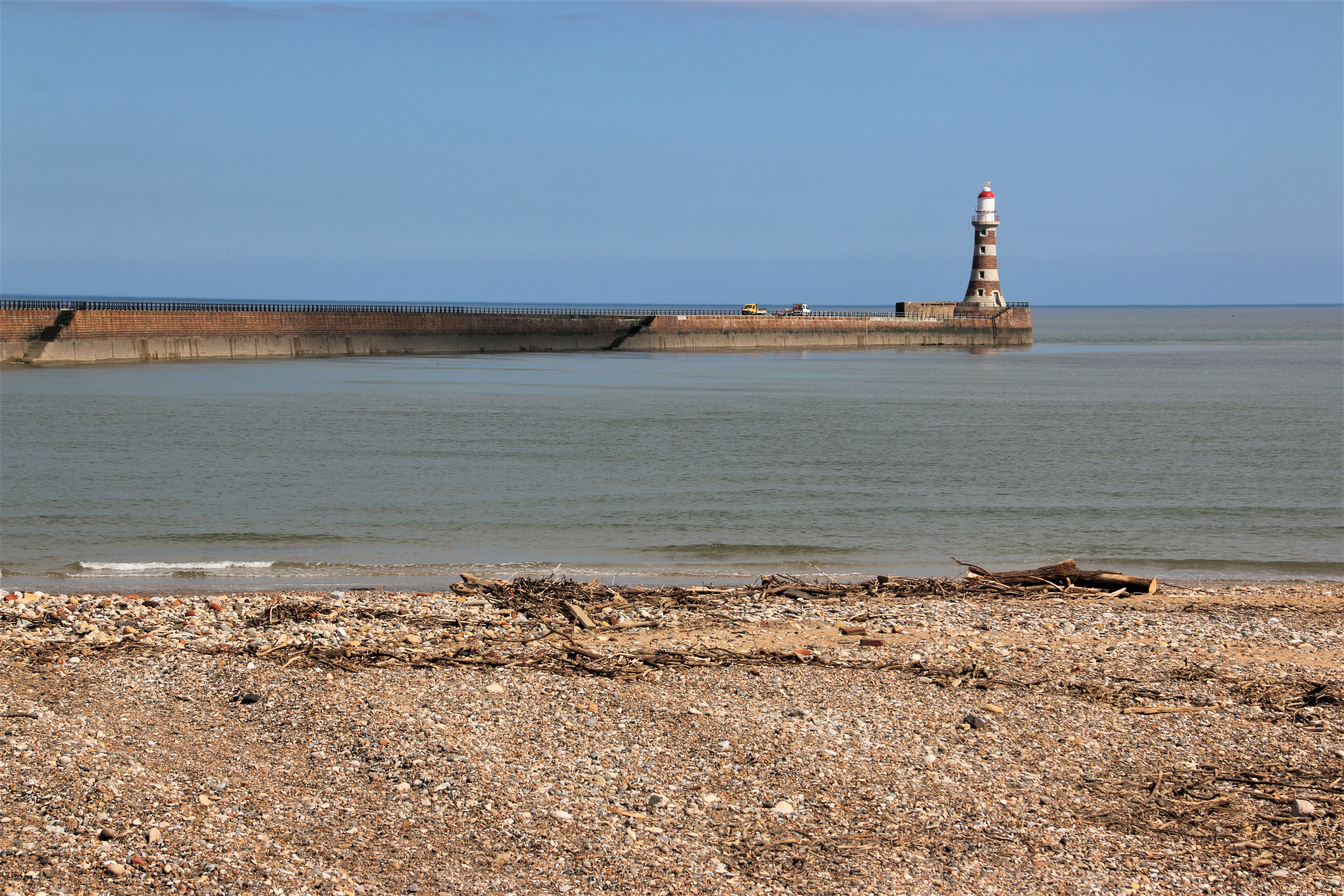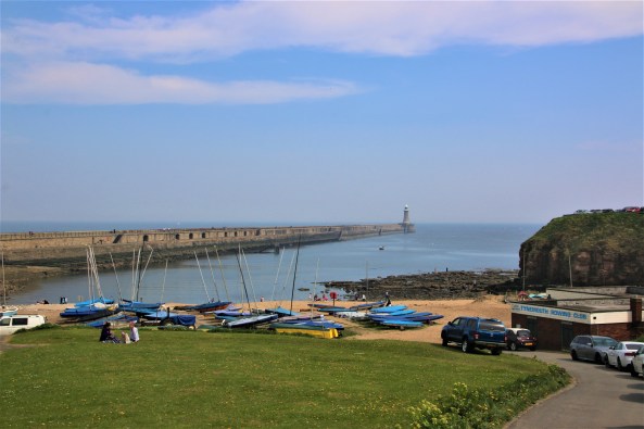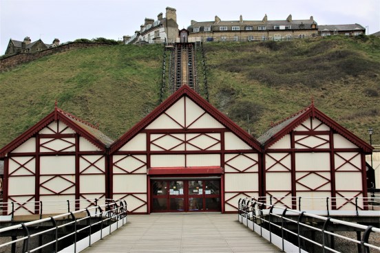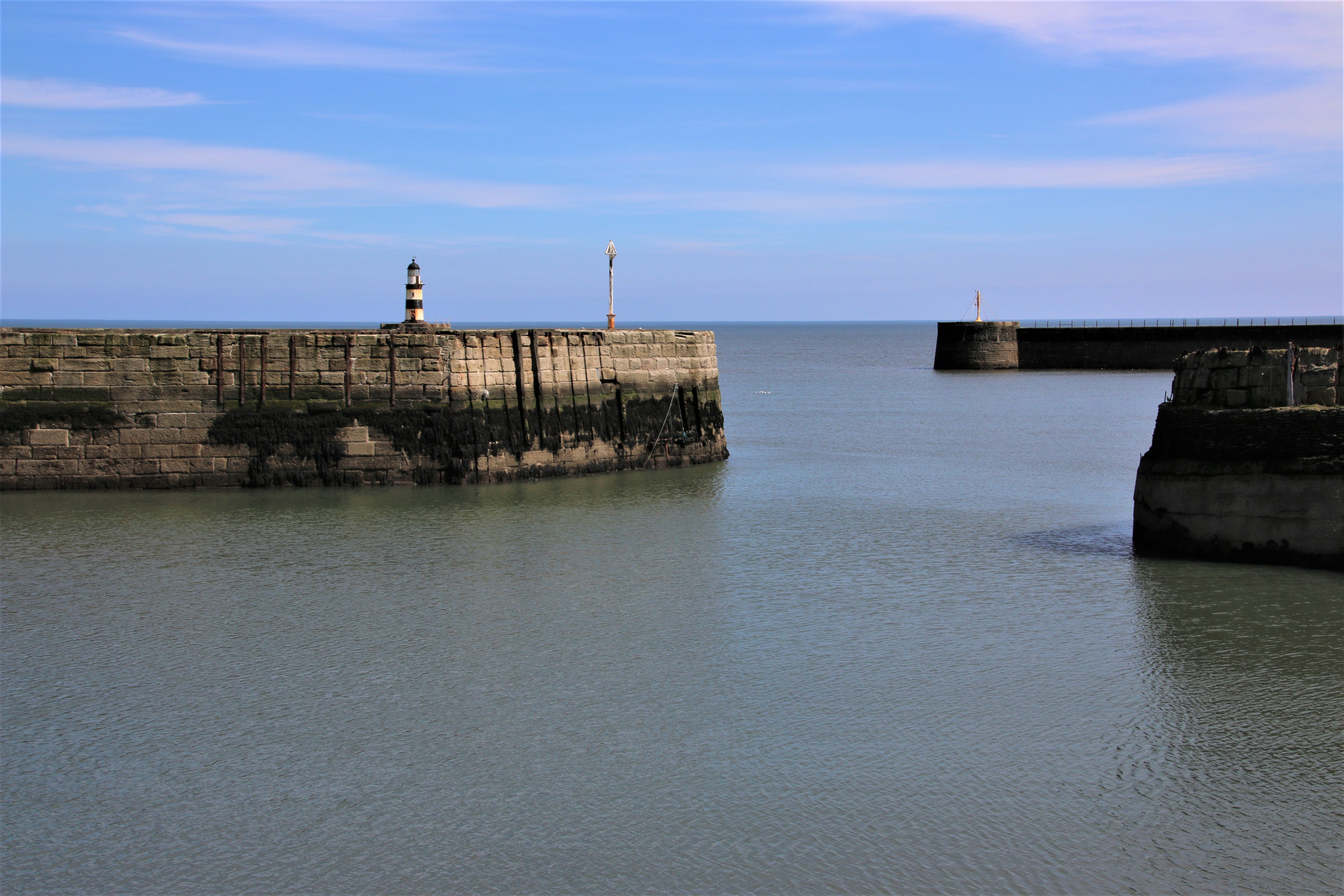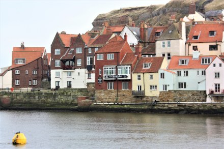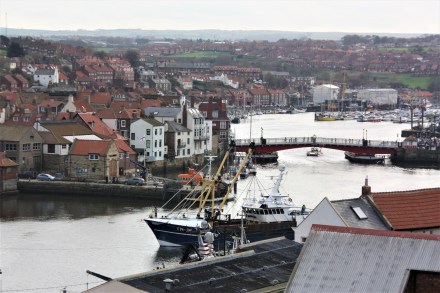 The ruins of Whitby Abbey stand high on the headland overlooking this great holiday destination with its Blue Flag beaches, its historic connections to the sea, the energy of a major fishing port and some of the best, or so the locals say, fish & chips around. It attracts visitors from all over as the crowds swarm around the quaysides and the cliff paths quaffing tea & scones in grand and not so grand tea rooms, consuming fast and slow food, visiting gem shops, searching for that special piece of local jet, and fossil shops and signing up for trips on land and sea. Lines of yachts and sailing boats moor up in the estuary of the River Eske mixing it up with large North Sea trawlers and smaller inshore cobles . Every type of housing, from many centuries, line the estuary, spreading up the surrounding headlands and hills – guest houses, holiday lets, hotels, grand Victorian edifices alongside stately terraces of Georgian grandeur, pubs and restaurants and snack bars. The two stone-built light houses guarding the entrance to the harbour are a very obvious reminder of the working heritage of this town.