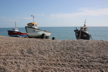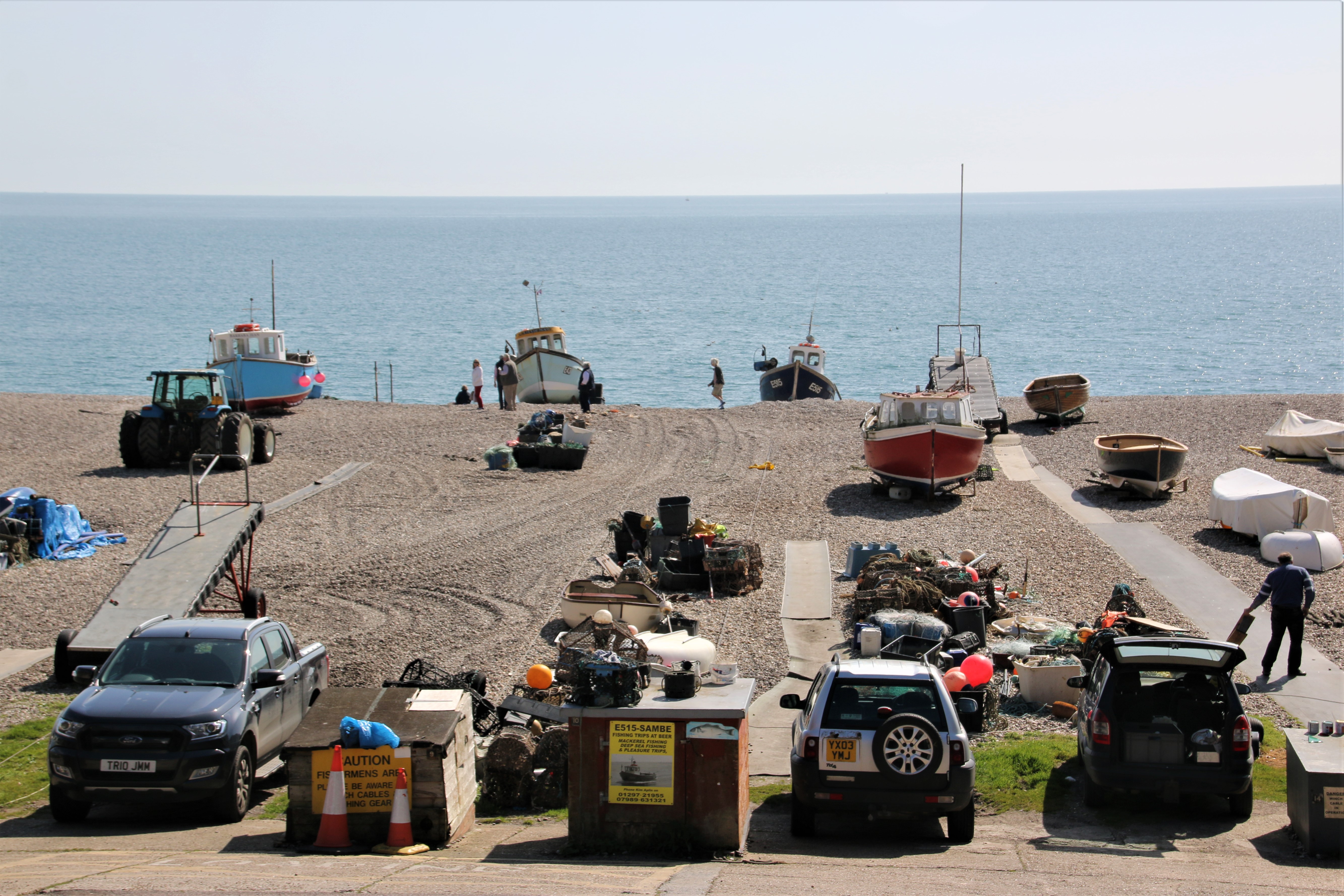 What a great name for a village. Fishing boats and tackle are lined up on the shore in a very orderly way. They share the beach with holidaymakers and anglers. The café is great.
