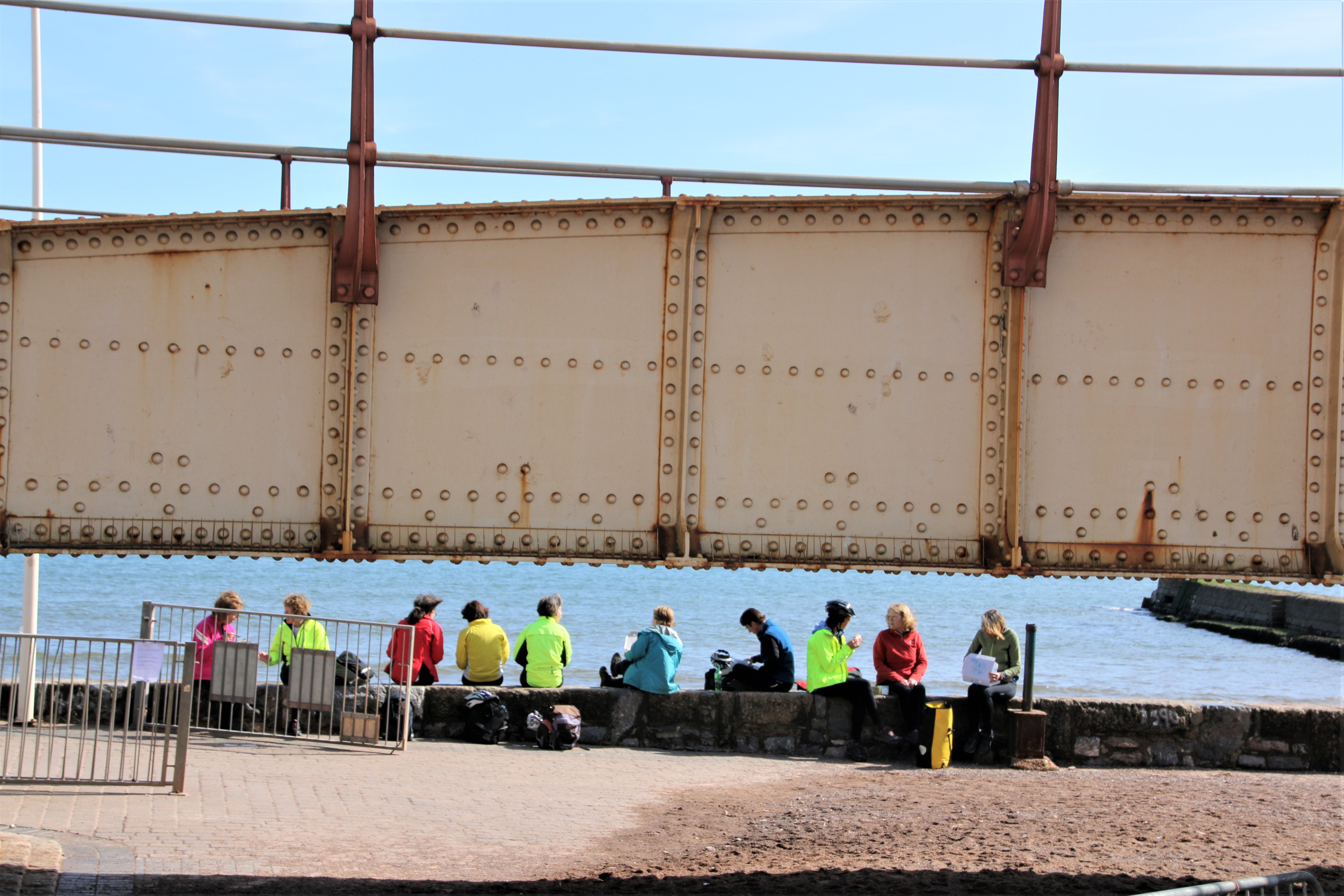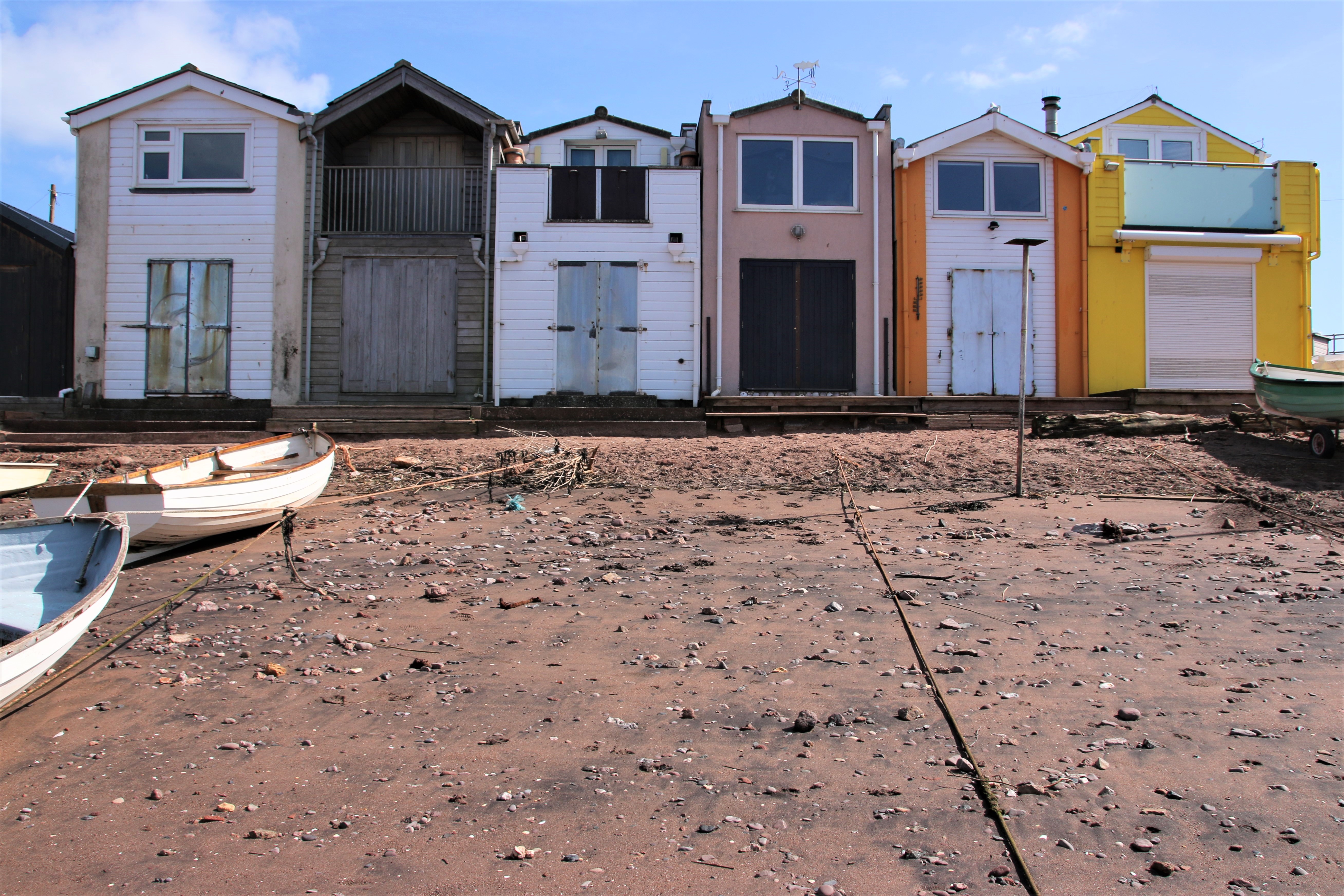 The River Teign flows out at the southern end of the beach and creates, on the land side, a shelter for pleasure craft and fishing vessels. Working sheds share the water’s edge with smart residential buildings.