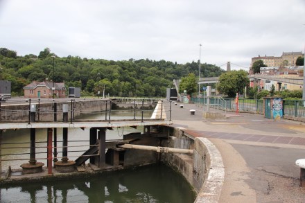 Vessels started to go elsewhere and the town was losing trade. Merchants came up with the idea of damming the river and making the harbour non-tidal. The tidal river was diverted (here, to the right) and a huge lock constructed at the entrance to the harbour.