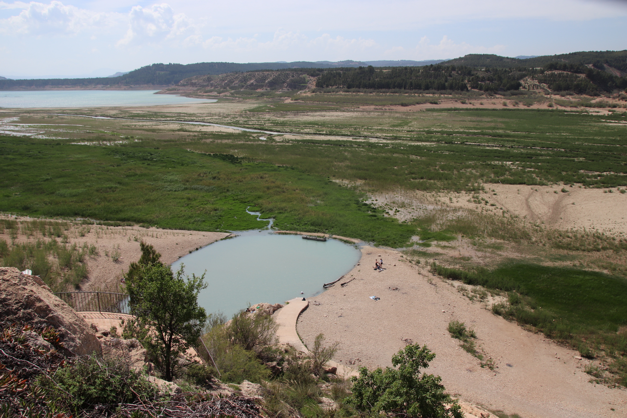 The Banos de Zujar, at the mouth of the almost-dried up river where it meanders into the lake, is a crack in the earth’s crust, allowing a thermal pool to emerge. This has a constant temperature of 38°, lovely and warm compared to the snow-resourced waters of all the other streams and lakes and reservoirs, and is bottomed with deliciously gooey, and supposedly skin-healthy, mud.