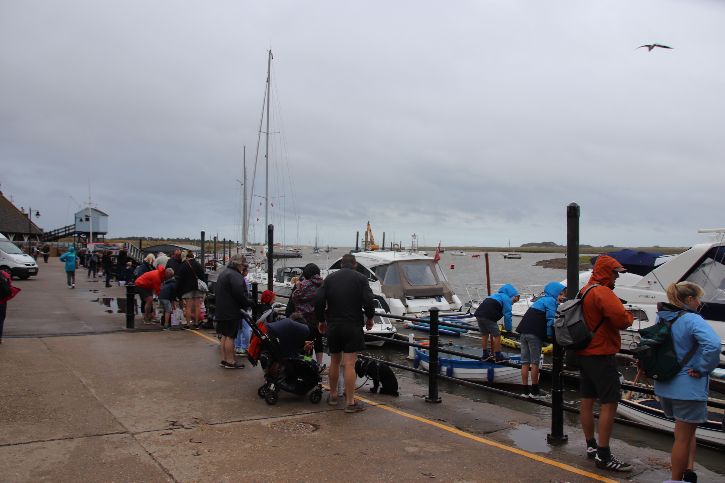 Grey skies, grey weather, grey companions silently stare at the grey landscape through grey windows streaked with chasing trails of snaking droplets and diagonals of shower streams of water. With surprise that anyone wants to leave the warm interior, the bus stops and its passengers push out through the door, out onto the harbour side where others have had the same idea. Car parks are full, the pavement is crowded. Through the gloom, family groups stagger against the drizzle and the powerful gusts of wind off the sea.