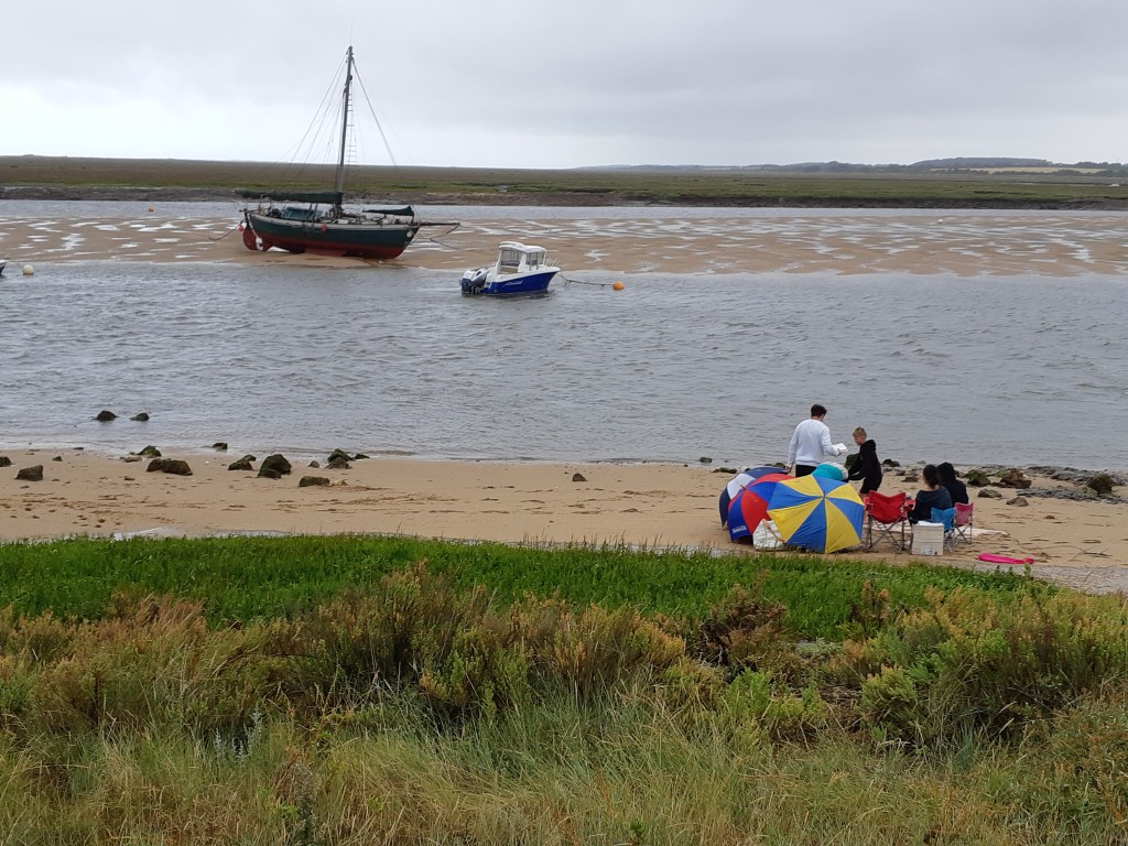 Intrepid groups set off up the inlet, the promise of the sands and the wonderful beach huts forcing them against the wind.