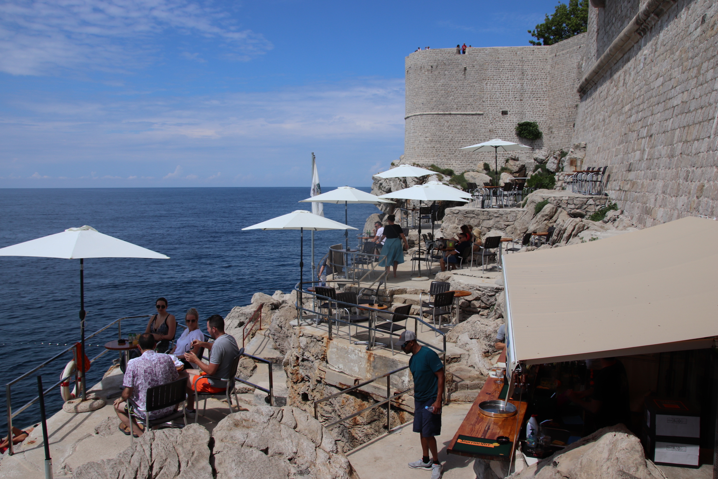 A wide stone/cement walkway meanders, dipping and diving, around the island along the cliffs. Once out of the resort itself the path becomes a bit wilder. An odd cove appears or a classy restaurant, perched high above the surf below. It’s not far before the path flattens out and eateries fill the available space again.