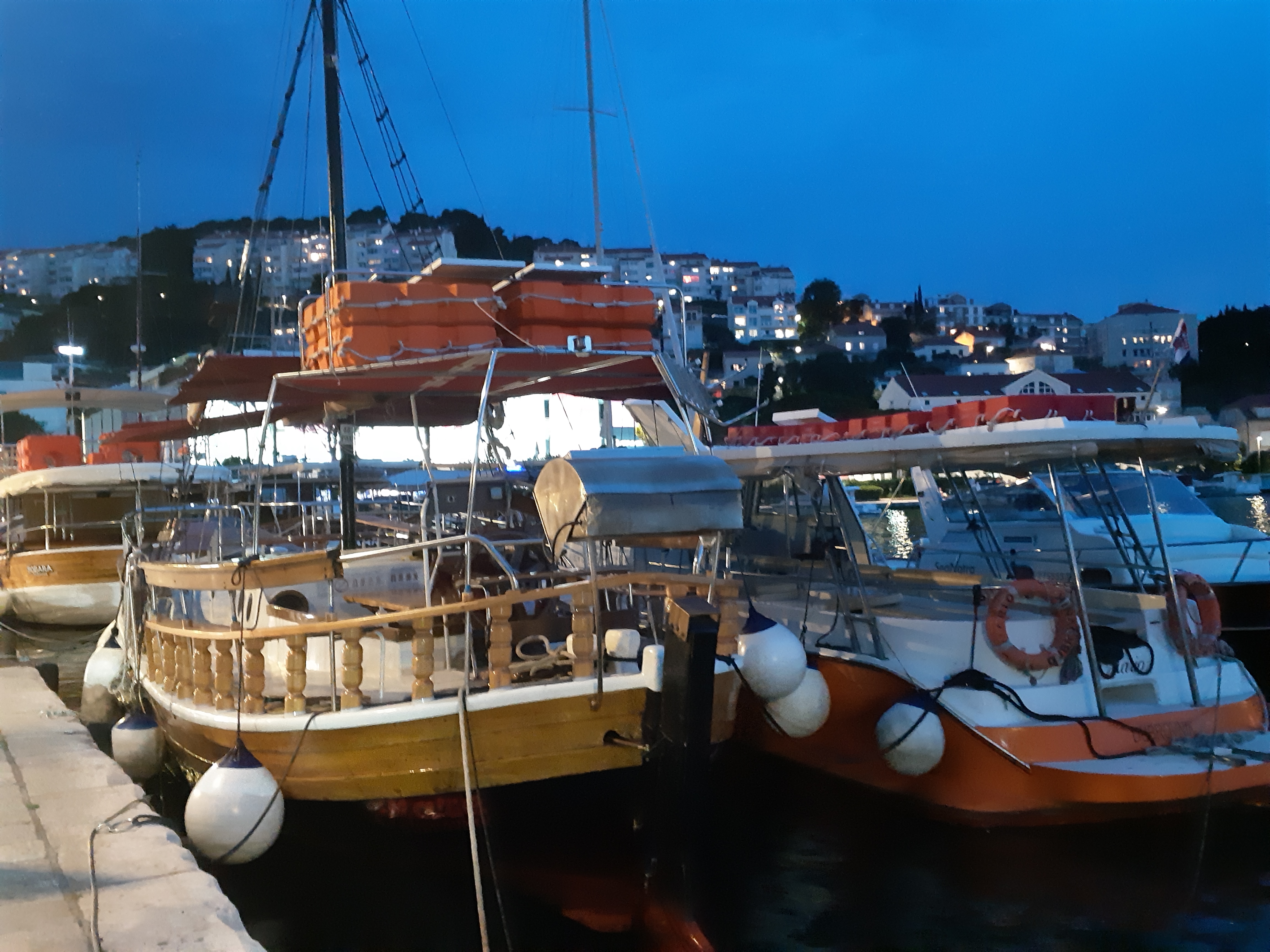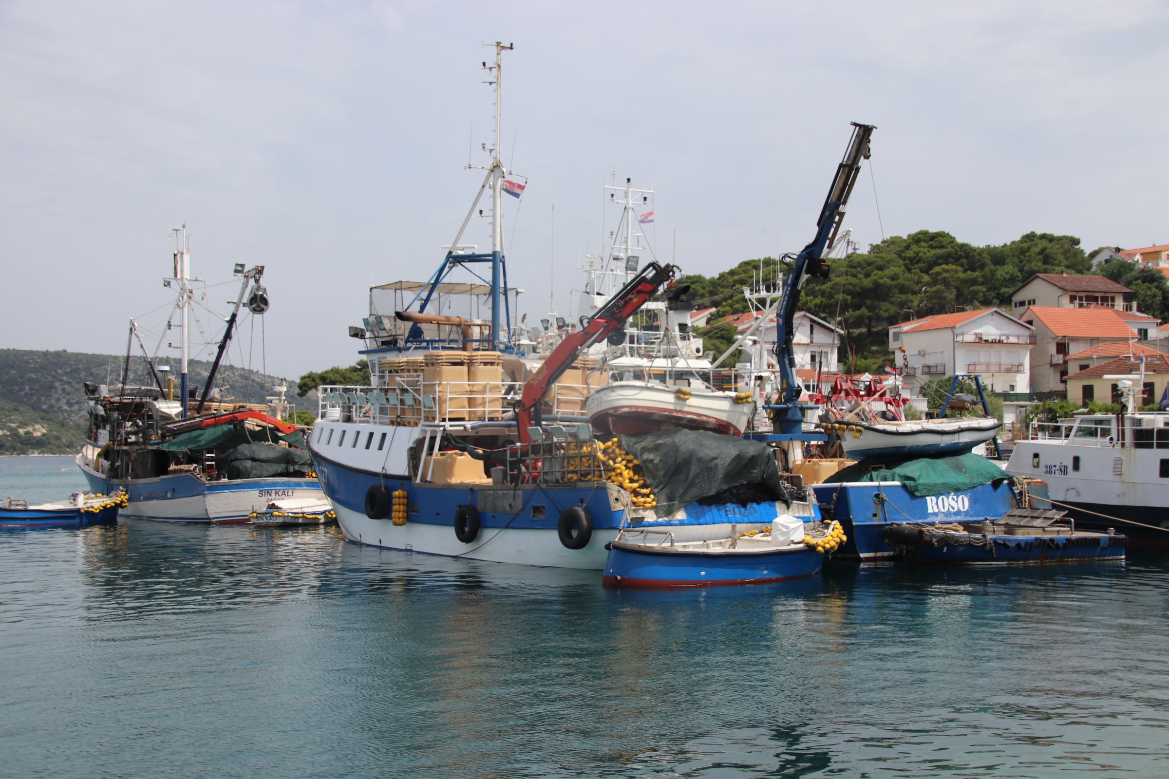Further up the coast, a number of small fishing villages dot the shore, just off the recently improved coastal road – fresh tarmac and pristine white lines. Rogoznica is one just village which seems to be representative of all the others but at least it still retains a heart in the form of a small fishing fleet and a large yacht marina.