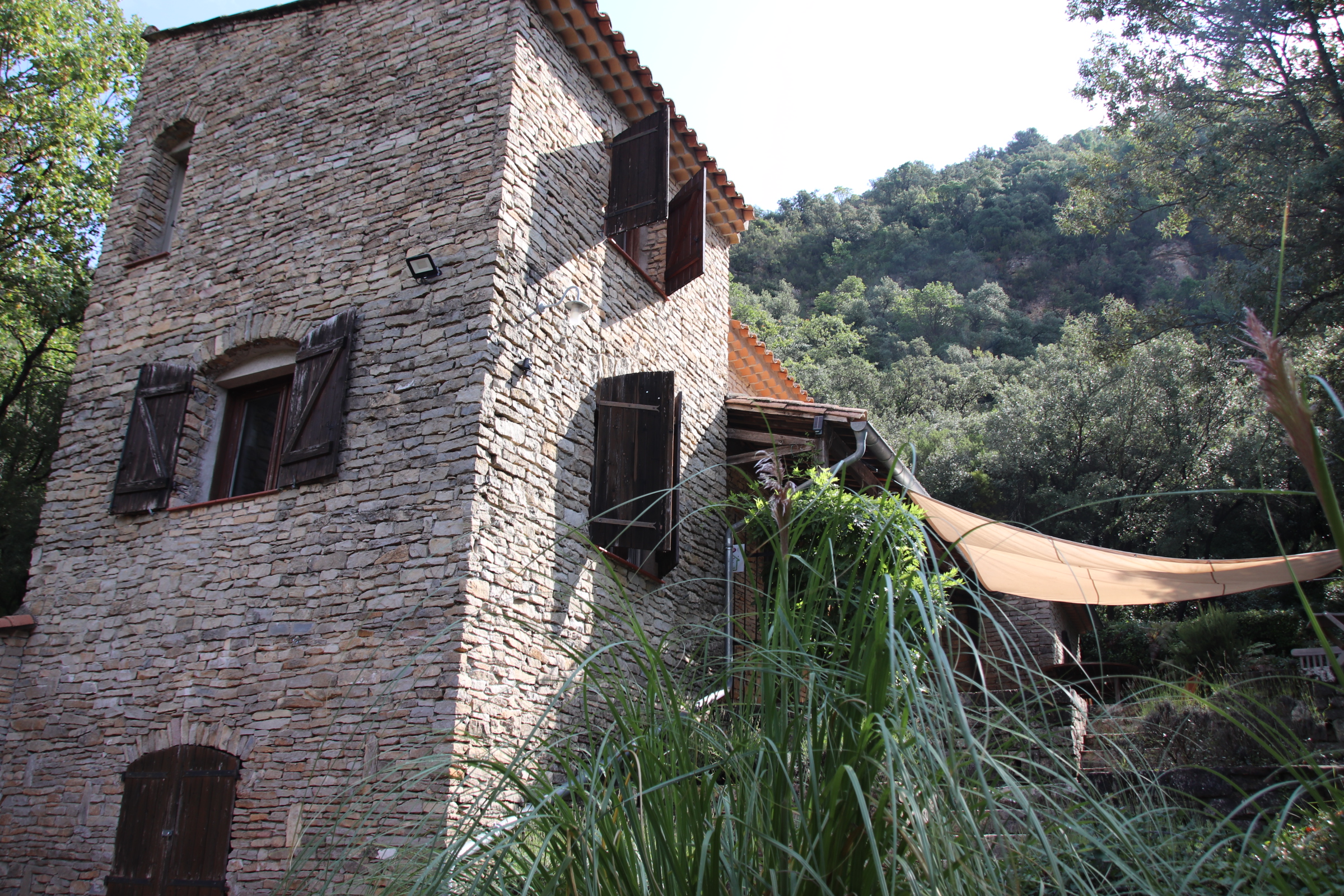 A five minute walk across the river on the old, red-rusting bridge and up the lane into the hills, amongst the steep hillside of trees & shrubs lies our home for the week – a great base from which to explore the Haut Aquitaine region in general and the Cevennes in particular.