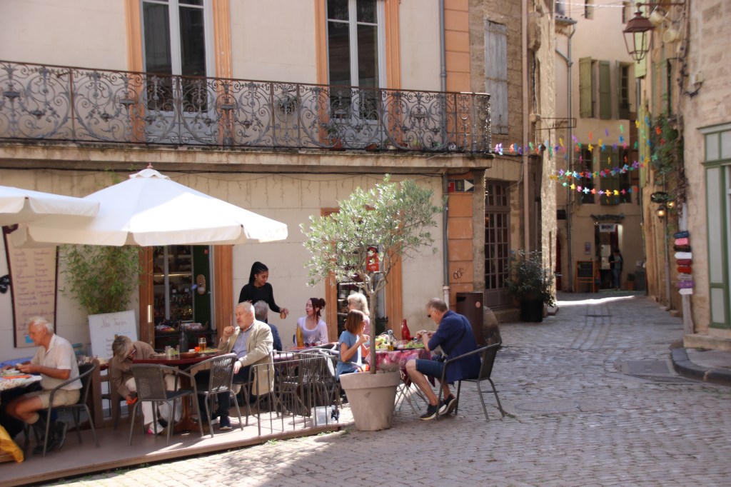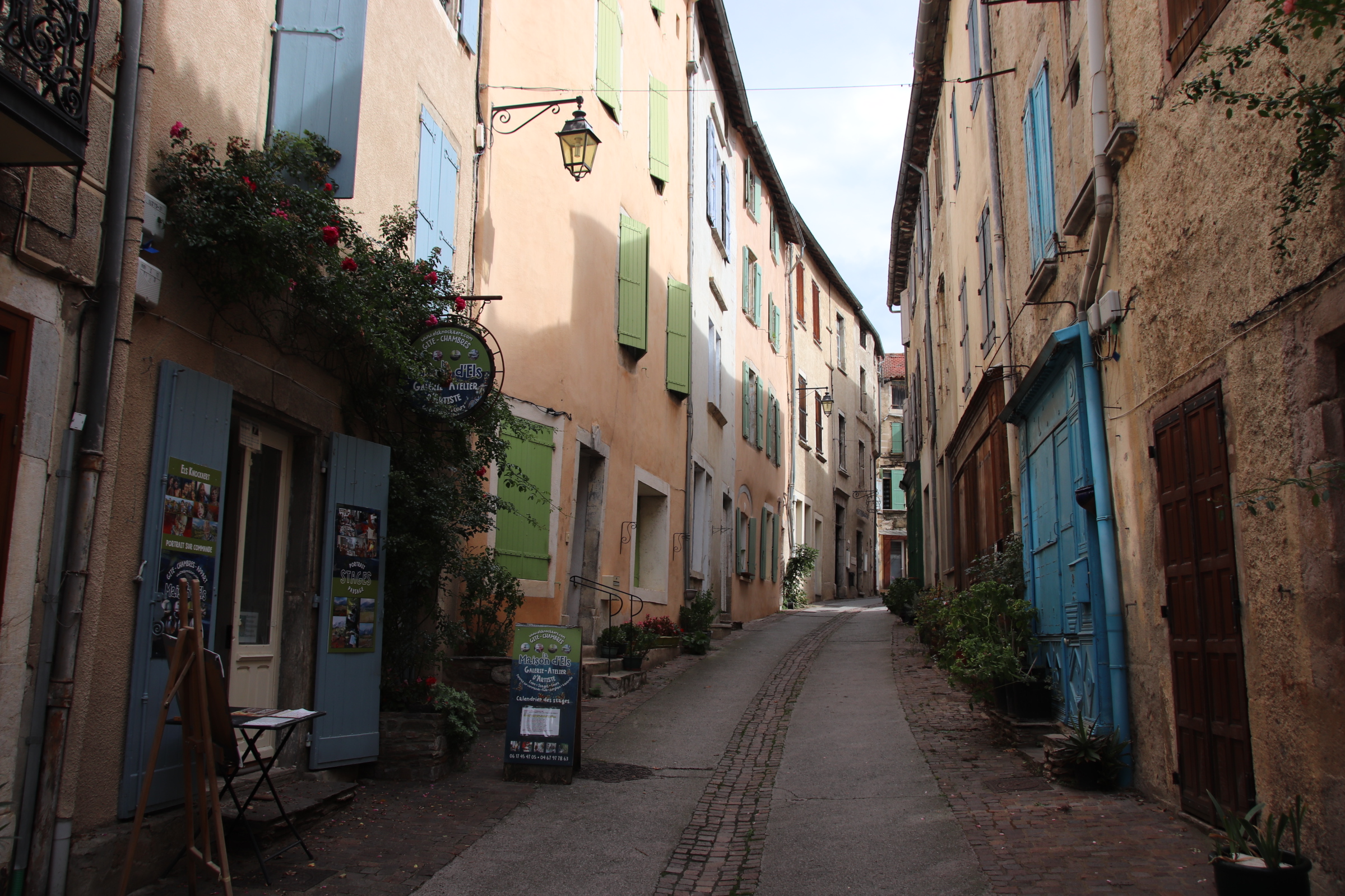 Many state that Olargues is one of the prettiest villages in France. I’m not sure about that. From a distance it certainly looks pretty. Yet, inside the walls, it’s narrow passages & lanes inhibit vehicular traffic and it’s ancient buildings ooze history and passing time and seem to have sucked the life out of the place.