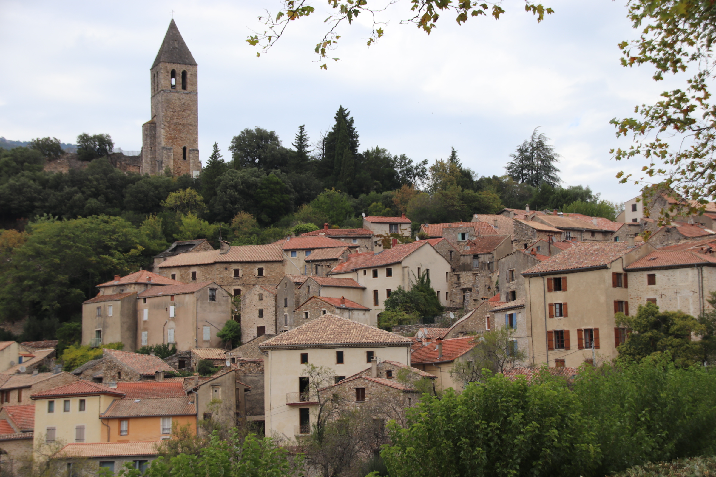Herepian Is the neighbouring village to Villemagne l’Argentier and it’s the main centre for food, bars, petrol etc. The drive south west from Herepian takes you on smooth, gently winding roads straight into this wonderful calming landscape of layers of sharpened ridges & scraggy outcrops covered in bubbling mixed woodlands & forests of cherry & hornbeam & chestnut alongside pine & cypress. Streams & rivers have cut their course deep into the landscape creating rocked ravines & razored gorges. Evidence of human habitation is left to the occasional ruin amongst the trees or the occasional small settlement that clusters around a crossing point over a steep valley bottomed by water of some sort – a stream or something a bit more substantial. Usually this takes the form of an old, arched, stone bridge which contributes to the general air of medieval living in these closed, tight, squeezed collections of cobbled lanes & stoned buildings.