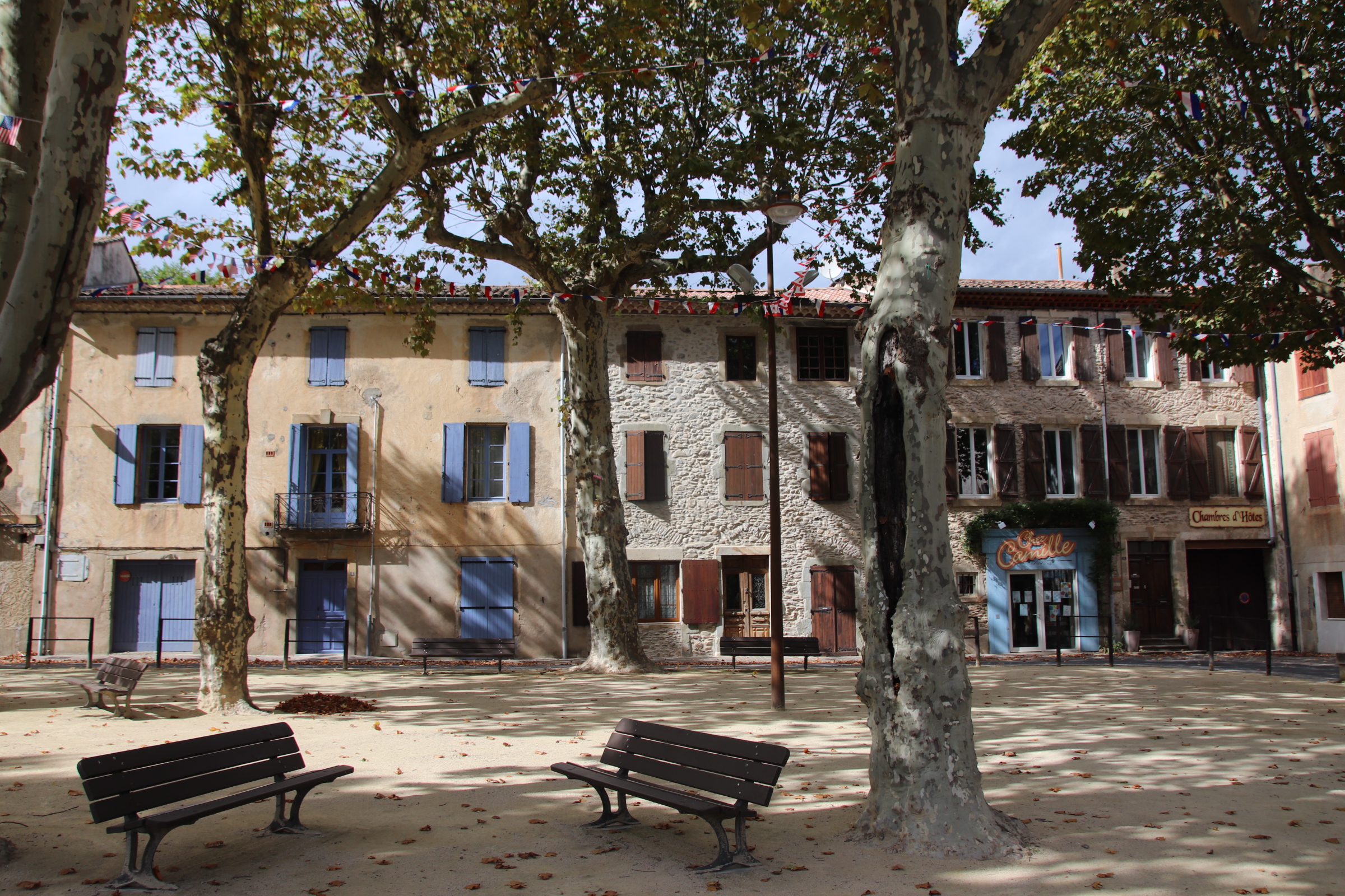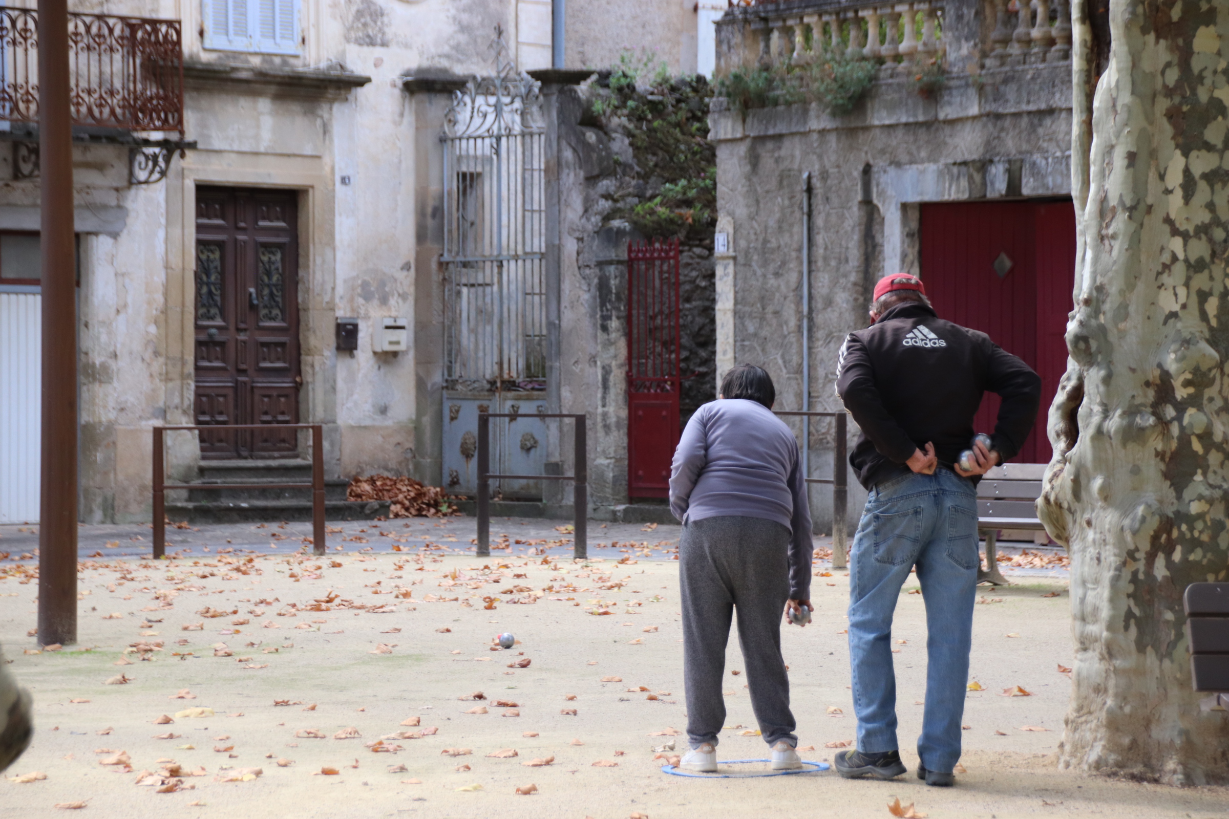 To complete the scene an old couple come out for a game of petanque, chatting away and traversing across the crunching stones between camouflaged trunks, clunking their boules as they go…. all so French!