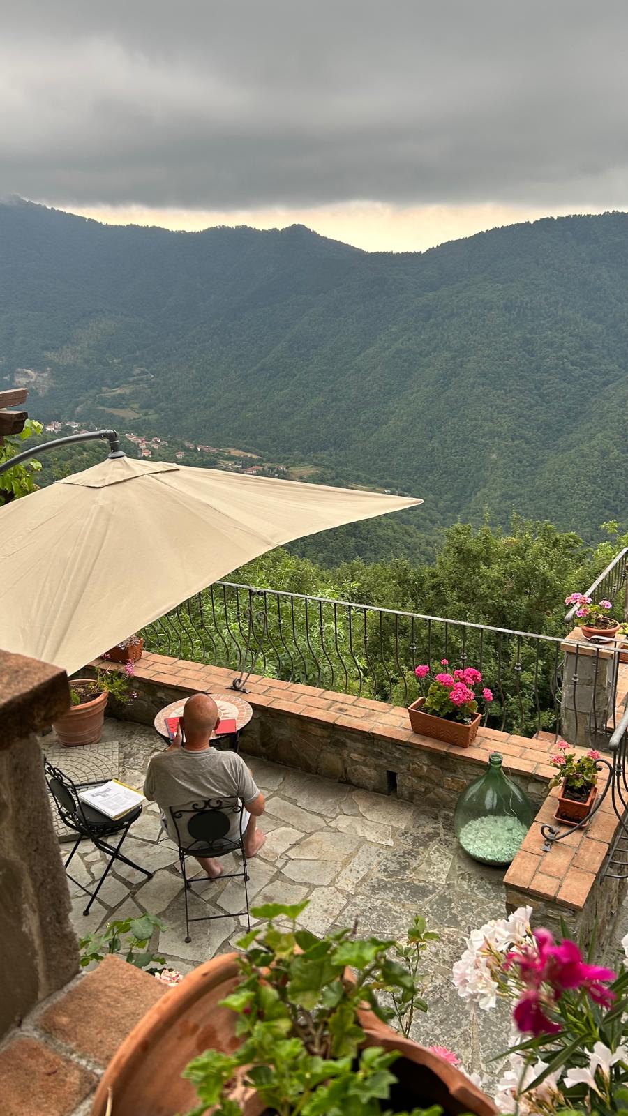 So now its a drive into northern Tuscany. Once off the autoroute and away from the flatlands south of Milan, the land starts to rise and wooded ridges appear in the distance, backed by dim, grey shark-teethed peaks. This is Lunigiana, a mountainous region that runs from the Apennine Mountains to the Mediterranean Sea, most of which falls in Tuscany but some in coastal Liguria and we are smack in the middle.