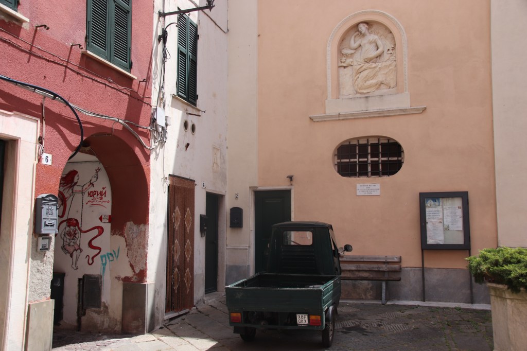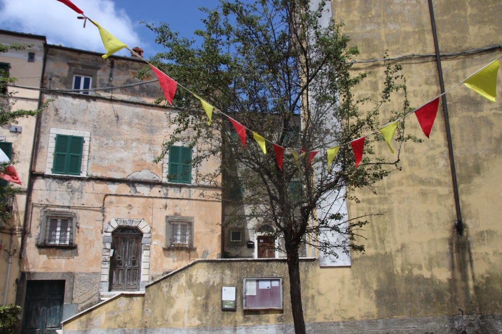 Castelnuovo Magro’s narrow streets lead down to the church from the open-air cinema in the castle ruins. The lines of cottages provide shaded pathways for the handful of locals on display.