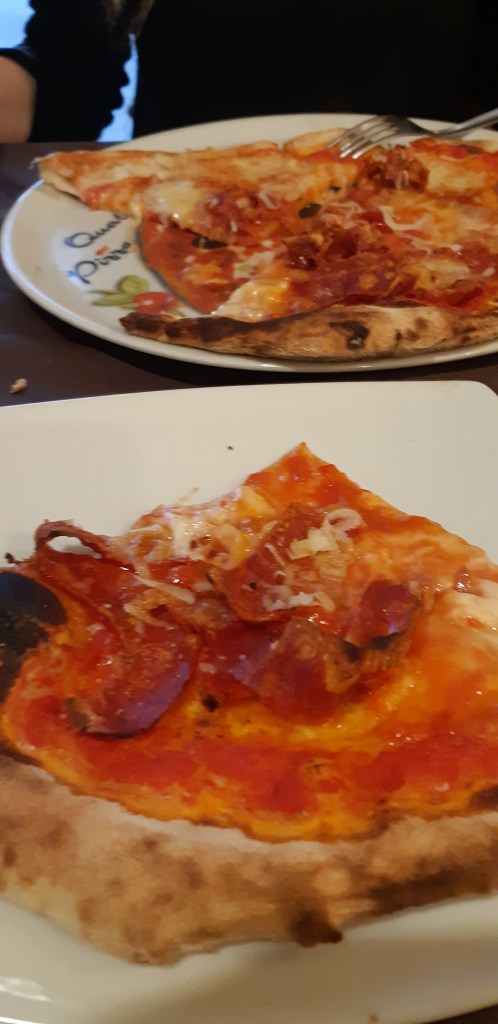 Once settled, it’s a quick consult of Google to find a place to eat. Mamma & Papa’s pizzeria sounds good (rated 4.6). We are several km outside any historic centre, in the suburbs, opposite the central railway station. The area does little to excite. It’s an extensive network of ordinary streets lined by low apartment blocks & residential housing with cars heavily squeezed against every kerb. The occasional collection of a few shops interrupts to service the locality.