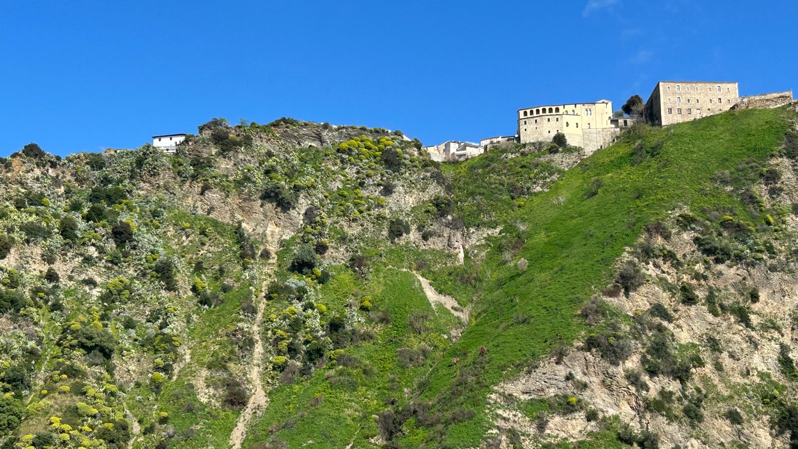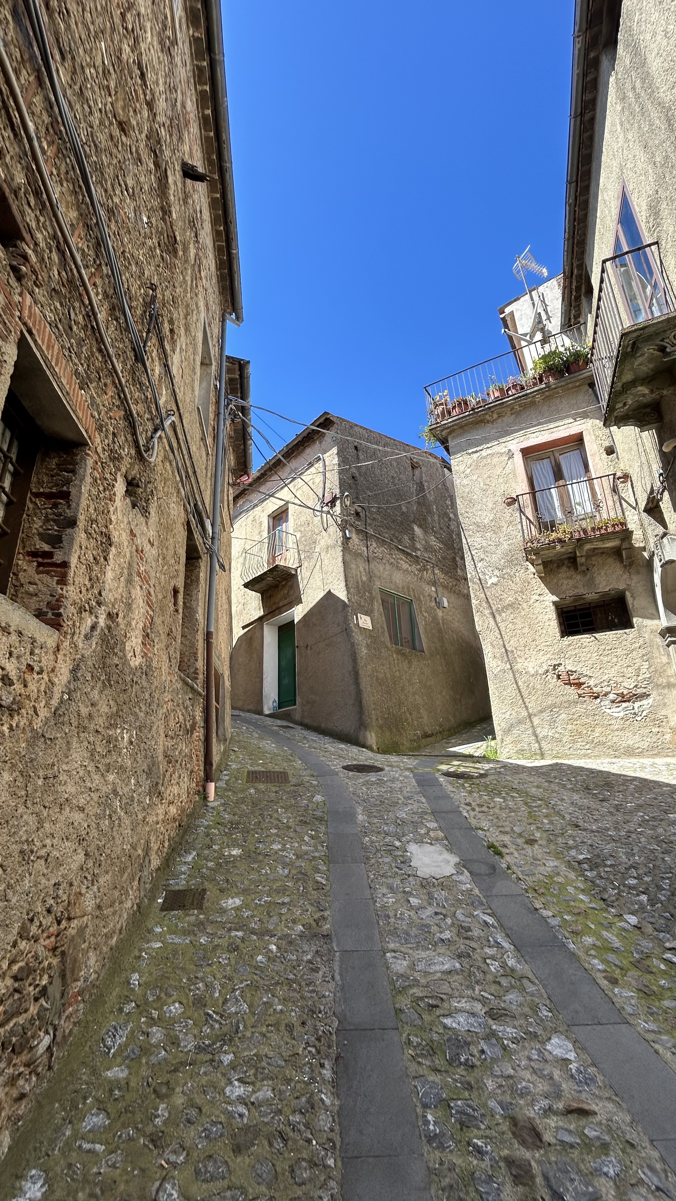 A tumbling watchtower & the church of Serricella di Acri overlook the modern town below. A few locals still in this ancient hamlet but most of the small houses have now been taken over as holiday homes.