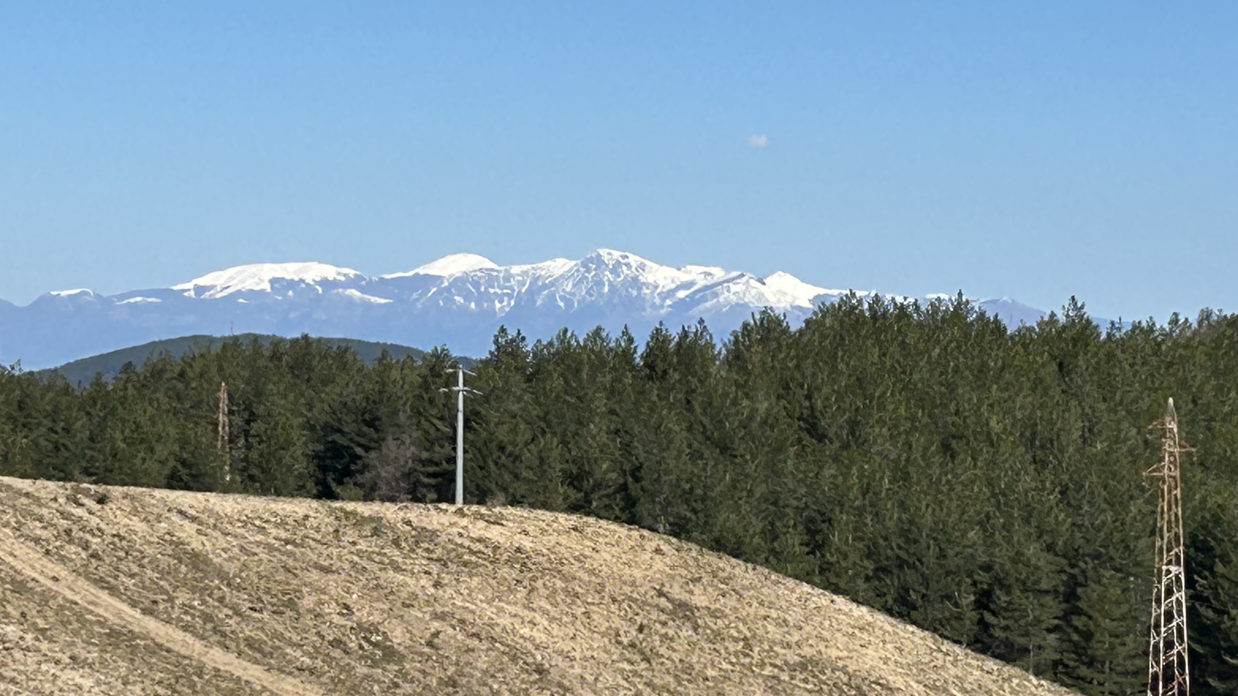 In the far distance a rim of peaks is topped in brilliant white, snow capped to show off the contrasts of stone structures & pine & harvested fields. Up here, 1,000 metres high , snow still lies on the ground. Locals drive up here with picnics & barbqs, with family & friends to take in the clean air & the freshness of the mountains.