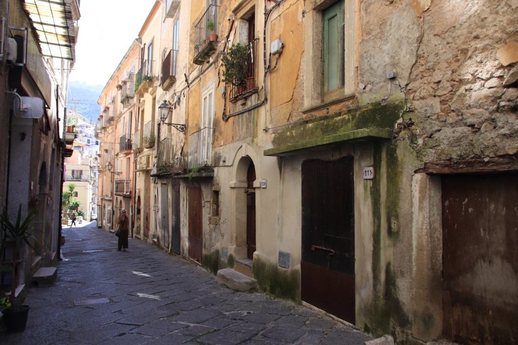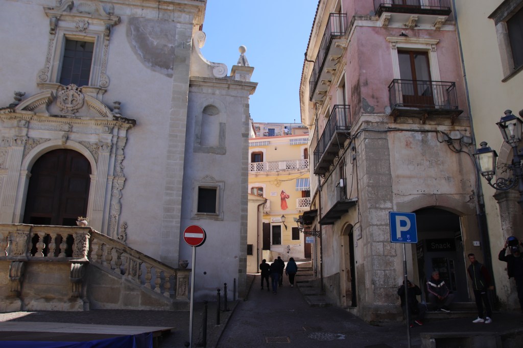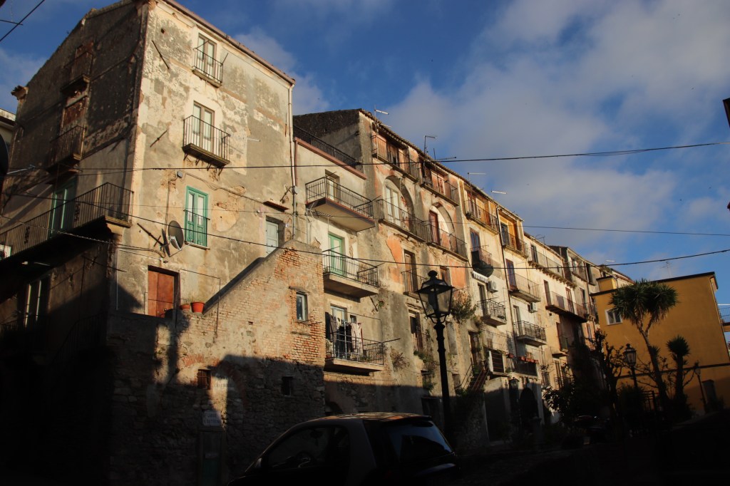 However, once through the arch into the first square, a delicious feast of ancient living awaits. with the old town spreading its tetra-blocked tendrils up against the perpendicular cliffs & gritty bedrock face of Calabria’s hard inside.