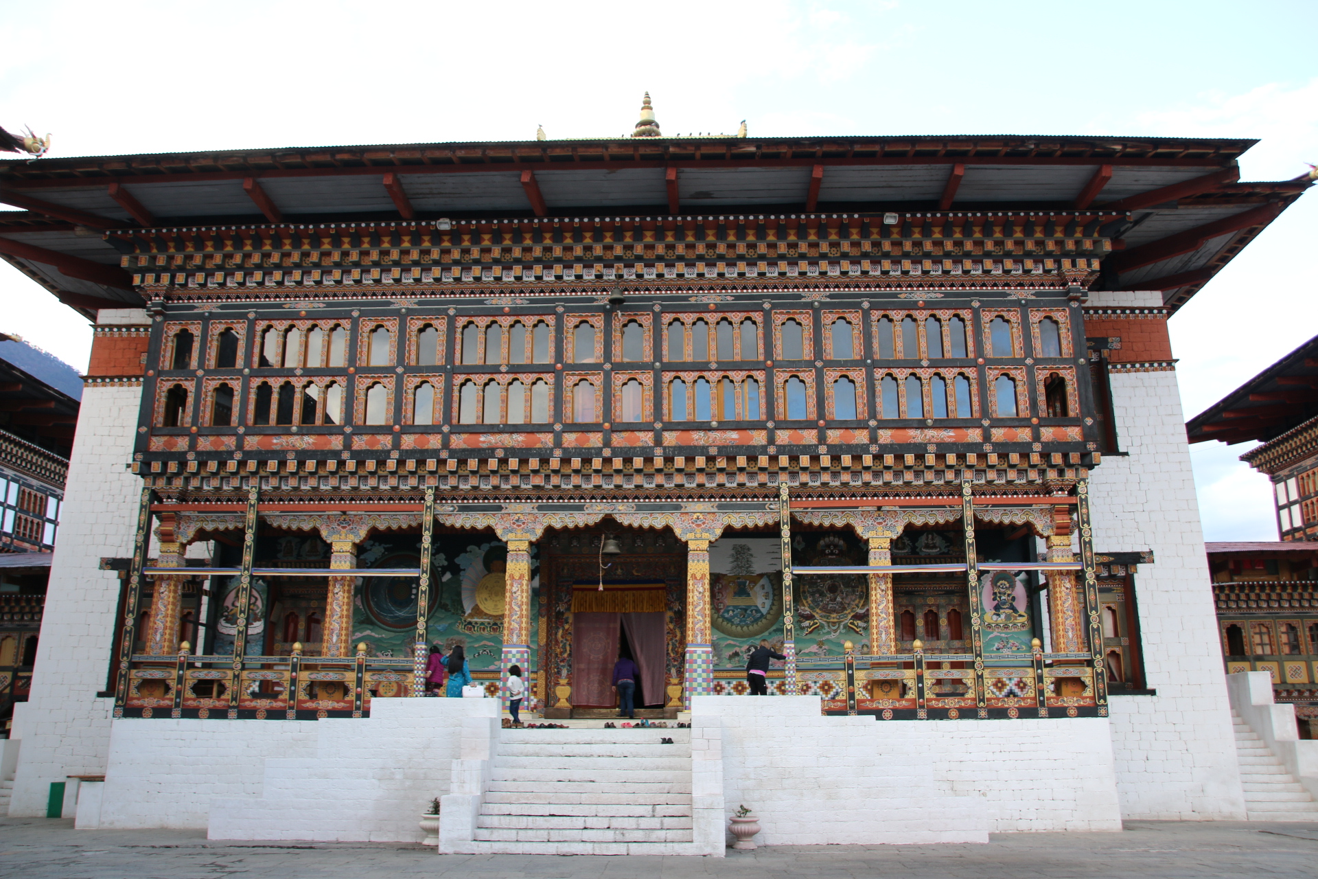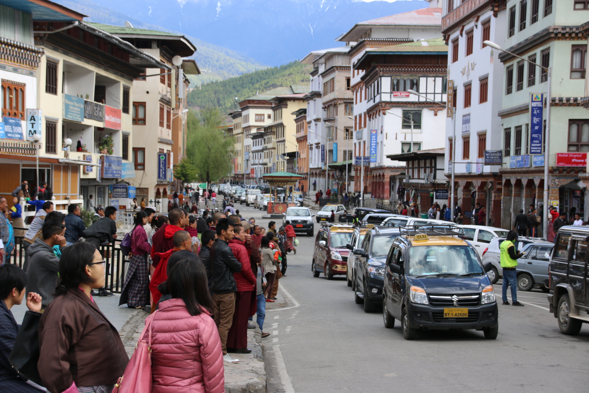 A few factoids about Bhutan. The king & his wife are very popular. Their picture is plastered everywhere. They are the beautiful couple, the Beckhams of Bhutan. 98% of Bhutanese are Buddhist. Every Tuesday is dry, except for tourists, so the population can keep their kidneys in good condition. Smoking is prohibited in all public places (I find a convenient bike shelter to cape). India plough lots of dosh into the country – a strong Bhutan is a good buffer against the Chinese. Only 35,000 foreign tourists are allowed to visit each year and have to spend £250 each day they are here – what a privilege! Littering is frowned upon. The government measure their economy in terms of Gross National Happiness – they have taken the decision to modernise but it must have a positive impact on the environment and on society. Sadly it is applied in a rather authotitarian way. Thimpu is a Bhutanese Brazilia. There was very little here 25 years ago and all the modern building throughout the city, and the country, has taken place since then funded by foreign governments, particularly India, I suspect.
