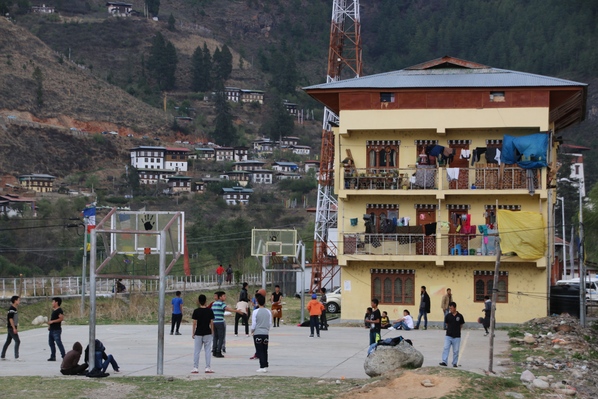 I drop down to the ordinary town of Punakha. The boys are playing