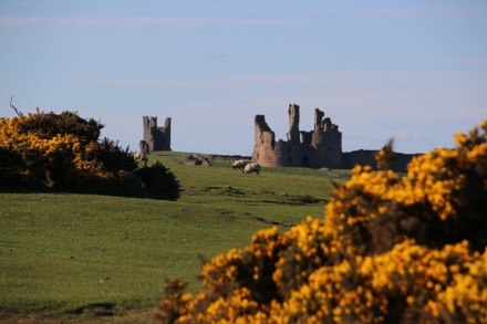 A ruined castle overlooks the town.